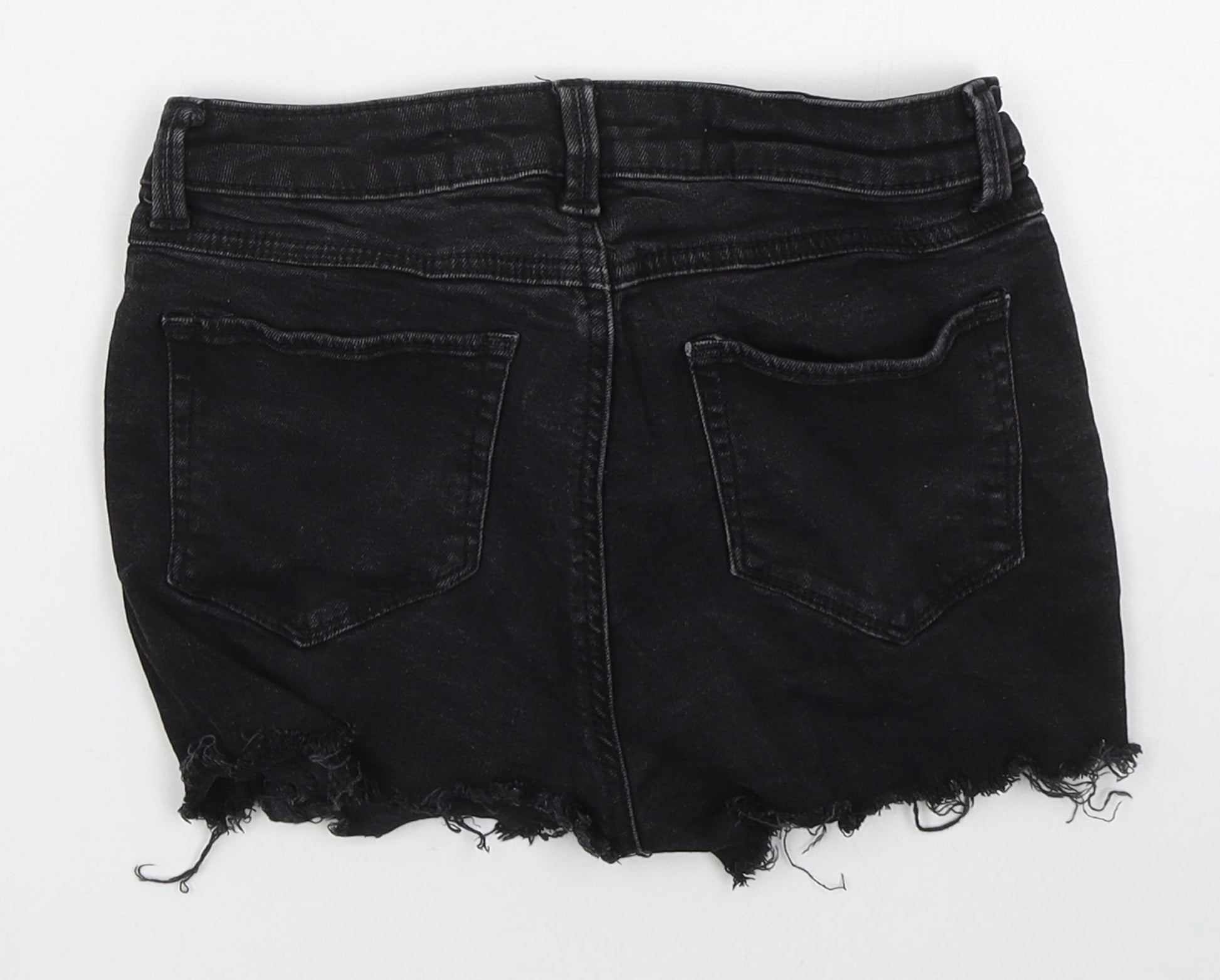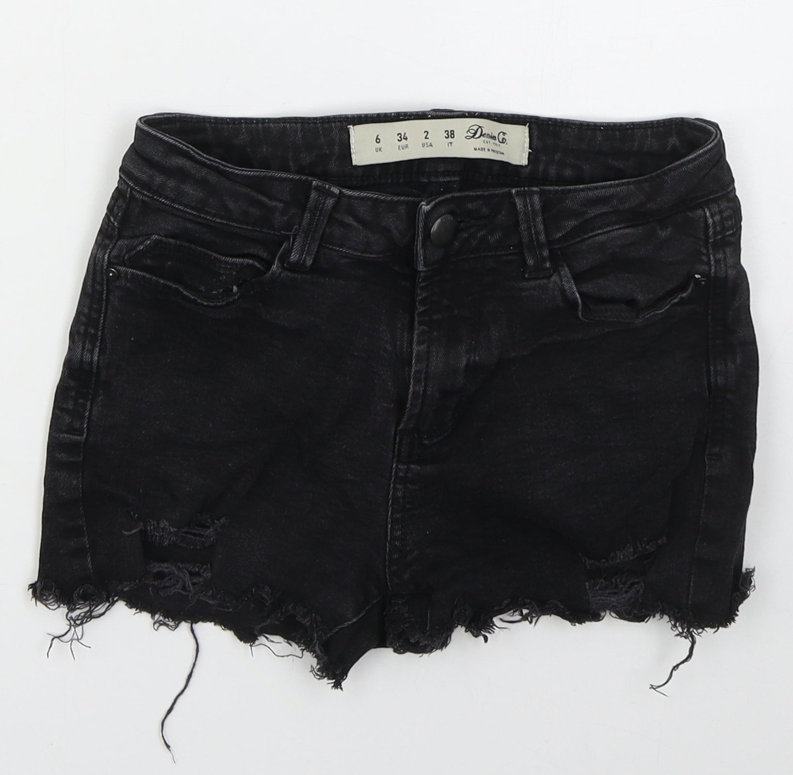 Denim Co Womens Black Cotton Hot Pants Shorts Size 6 Regular Button - Distressed Look
