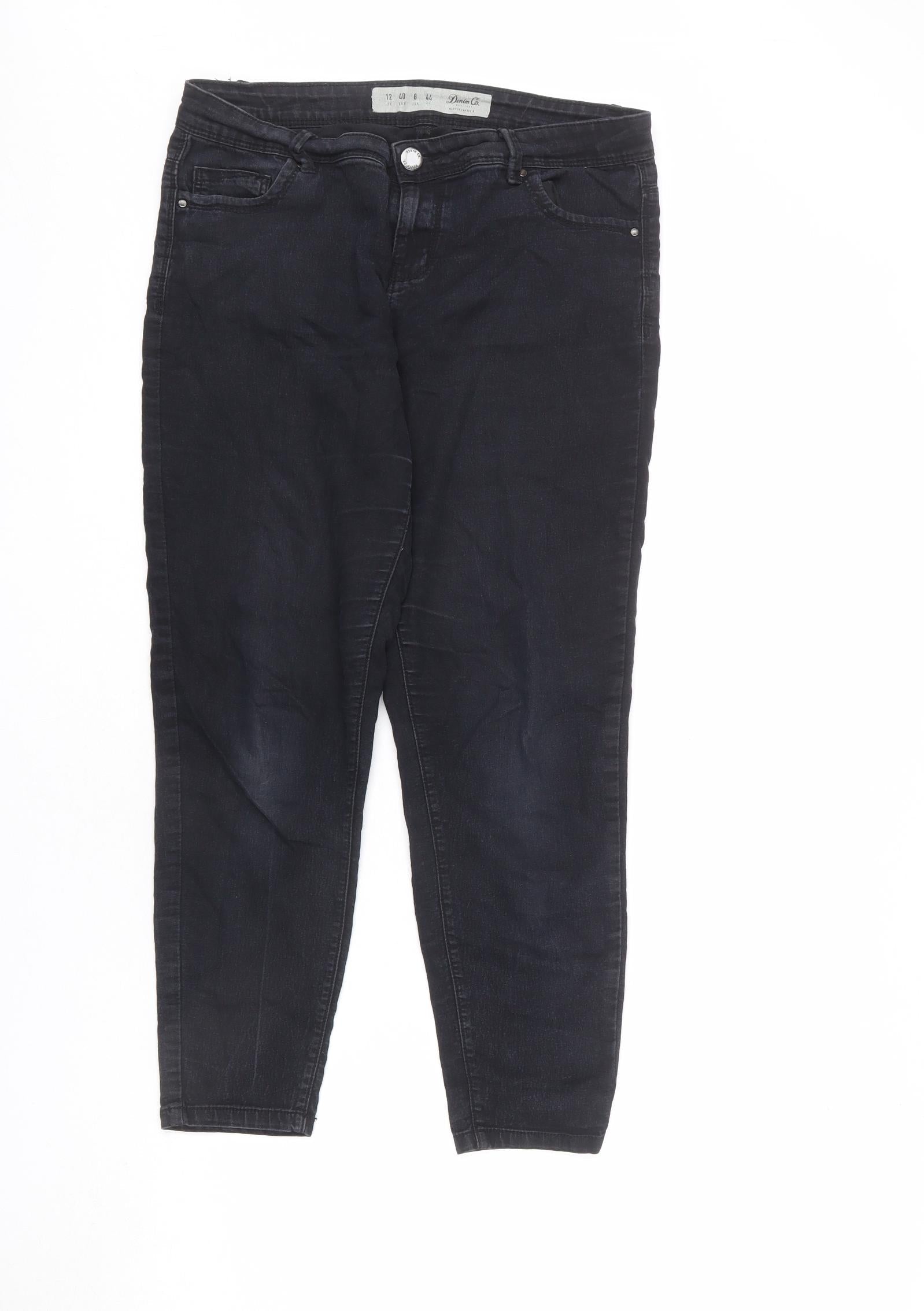 Denim & Co. Womens Black Cotton Skinny Jeans Size 12 L23 in Regular Zip - Short