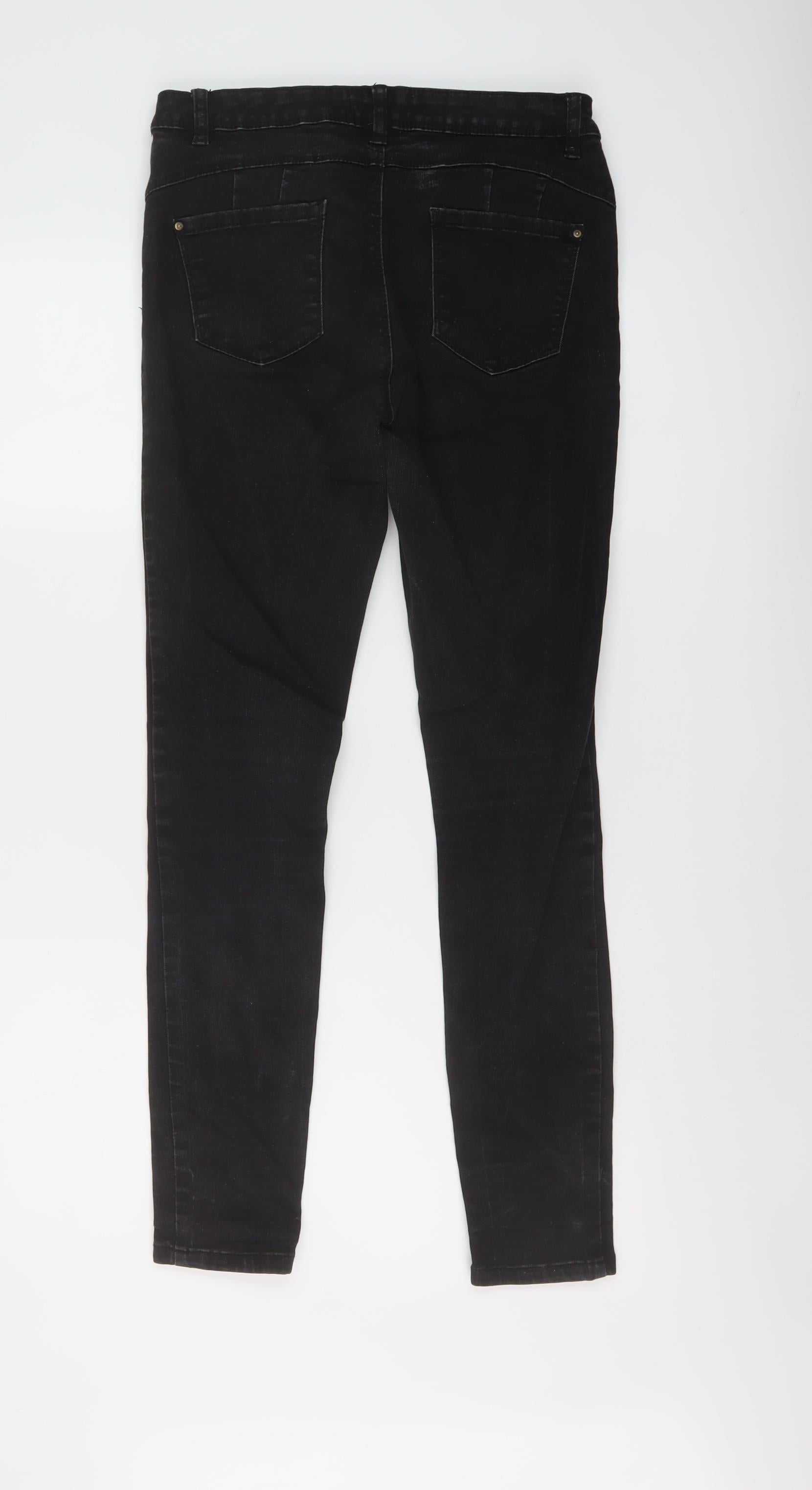 Denim & Co. Womens Black Cotton Skinny Jeans Size 14 L28 in Regular Button