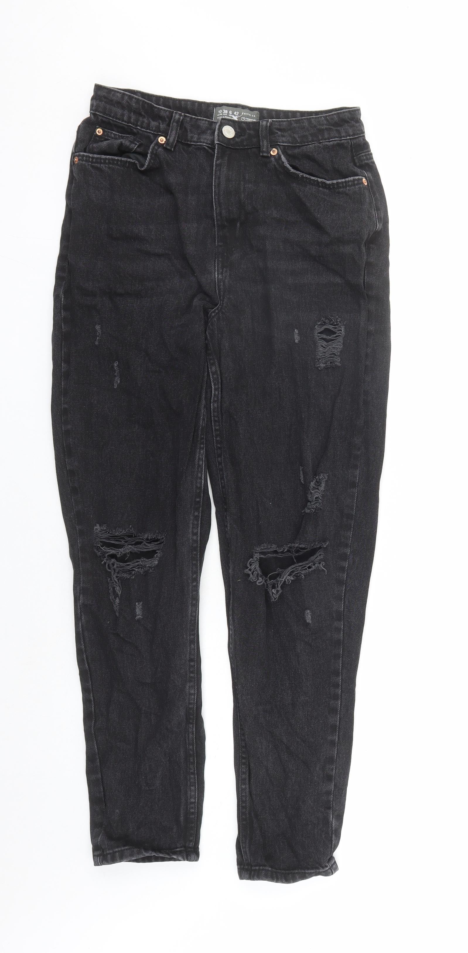 Denim & Co. Womens Black Cotton Straight Jeans Size 10 L29 in Regular Zip