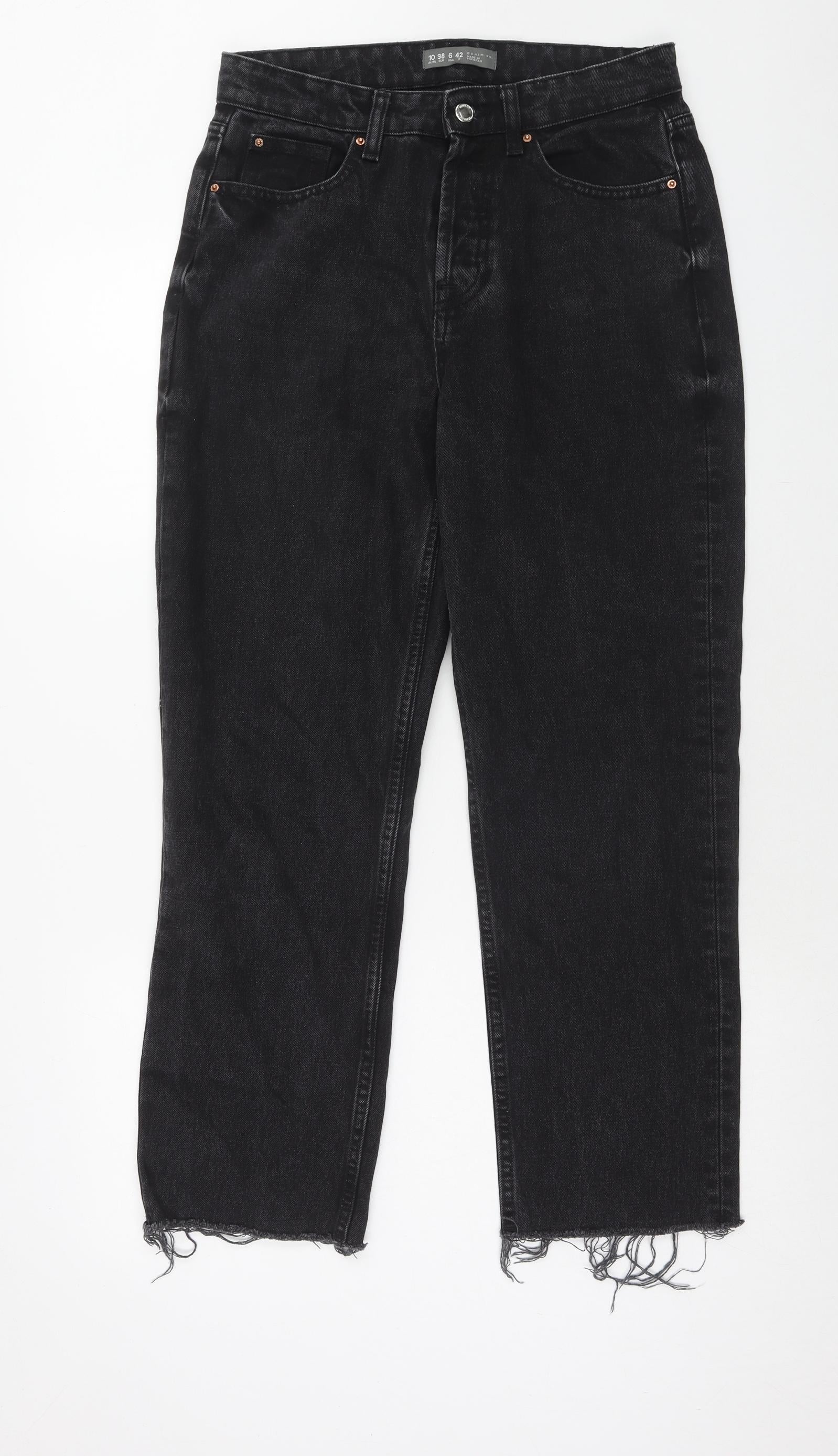 Denim & Co. Womens Black Cotton Straight Jeans Size 10 Regular Button