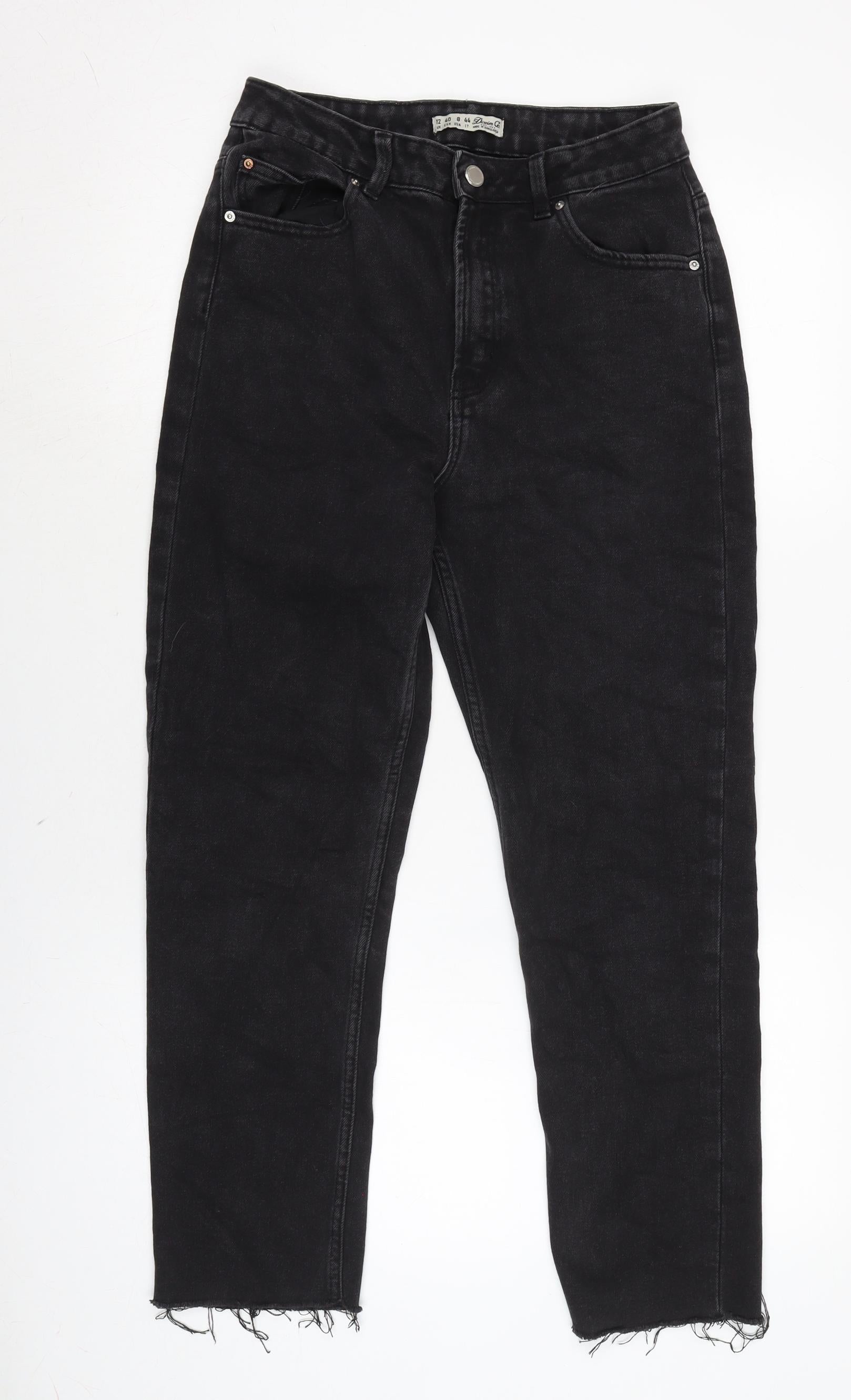 Denim & Co. Womens Black Cotton Straight Jeans Size 12 L24 in Regular Zip - Raw Hem