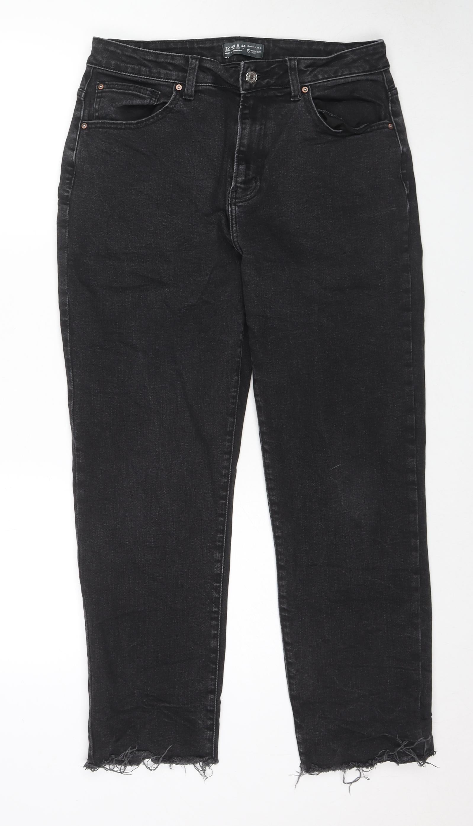 Denim & Co. Womens Black Cotton Straight Jeans Size 12 L26 in Regular Zip