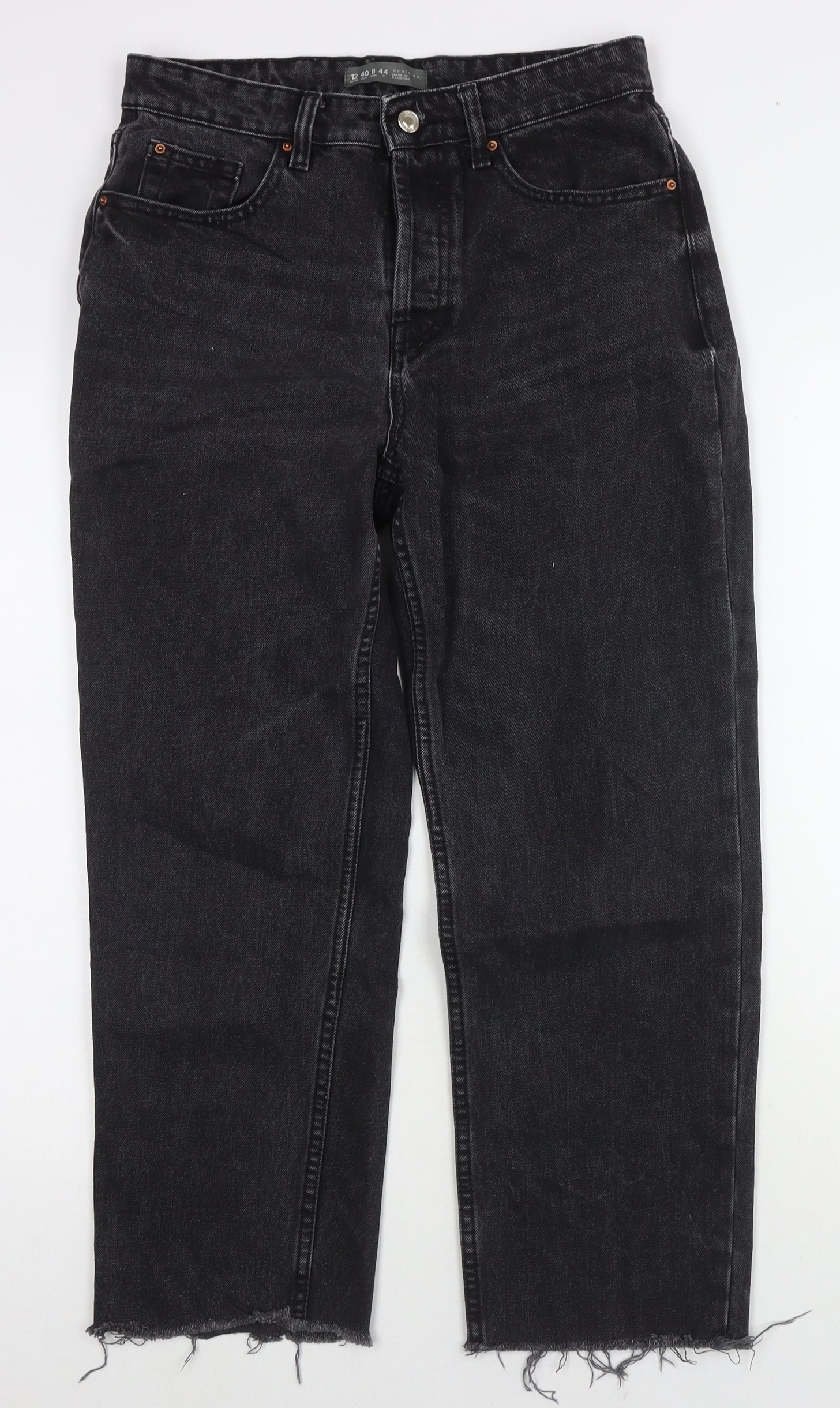 Denim & Co. Womens Black Cotton Straight Jeans Size 12 L26 in Regular Zip