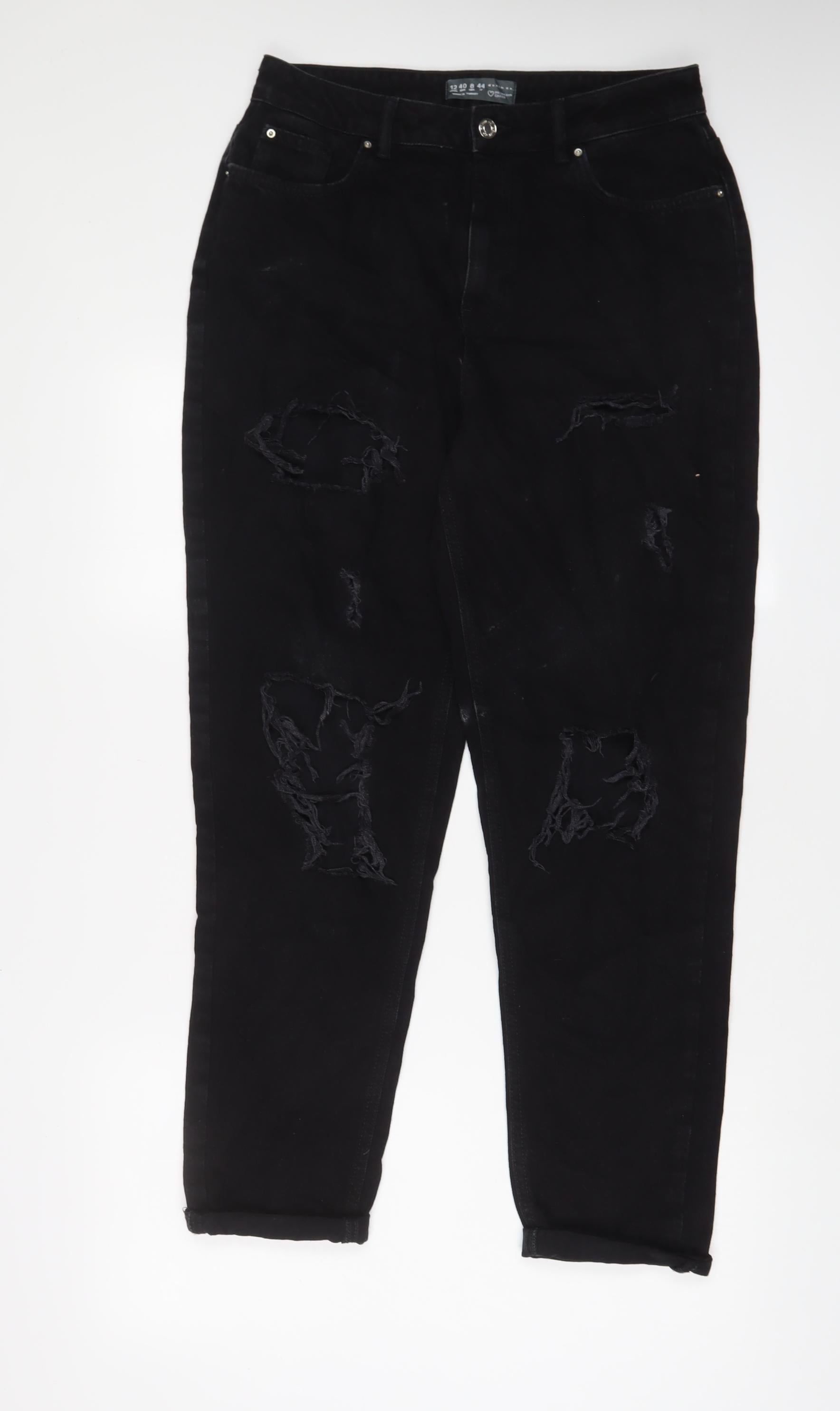 Denim & Co. Womens Black Cotton Straight Jeans Size 12 L28 in Regular Zip