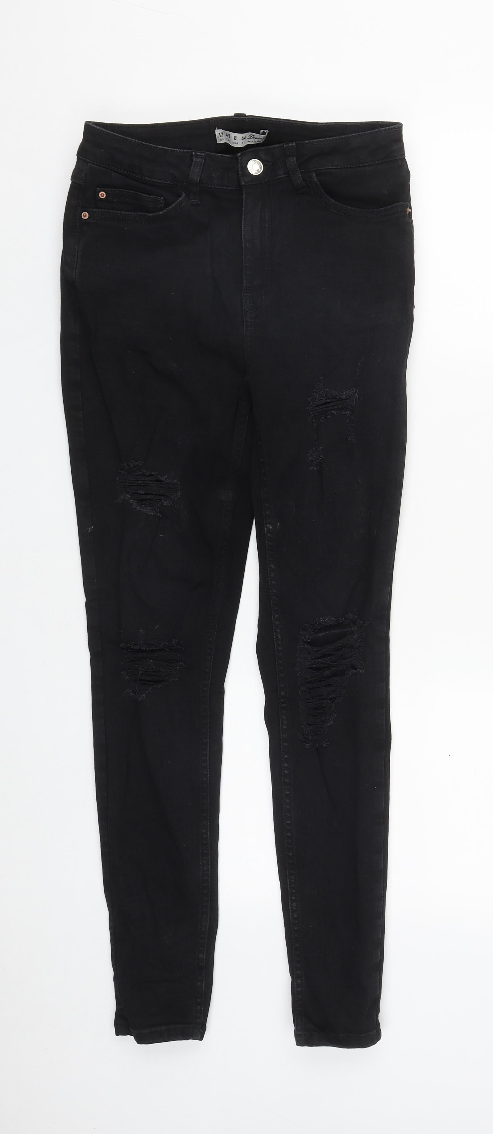 Denim & Co. Womens Black Cotton Straight Jeans Size 12 L29 in Regular Zip