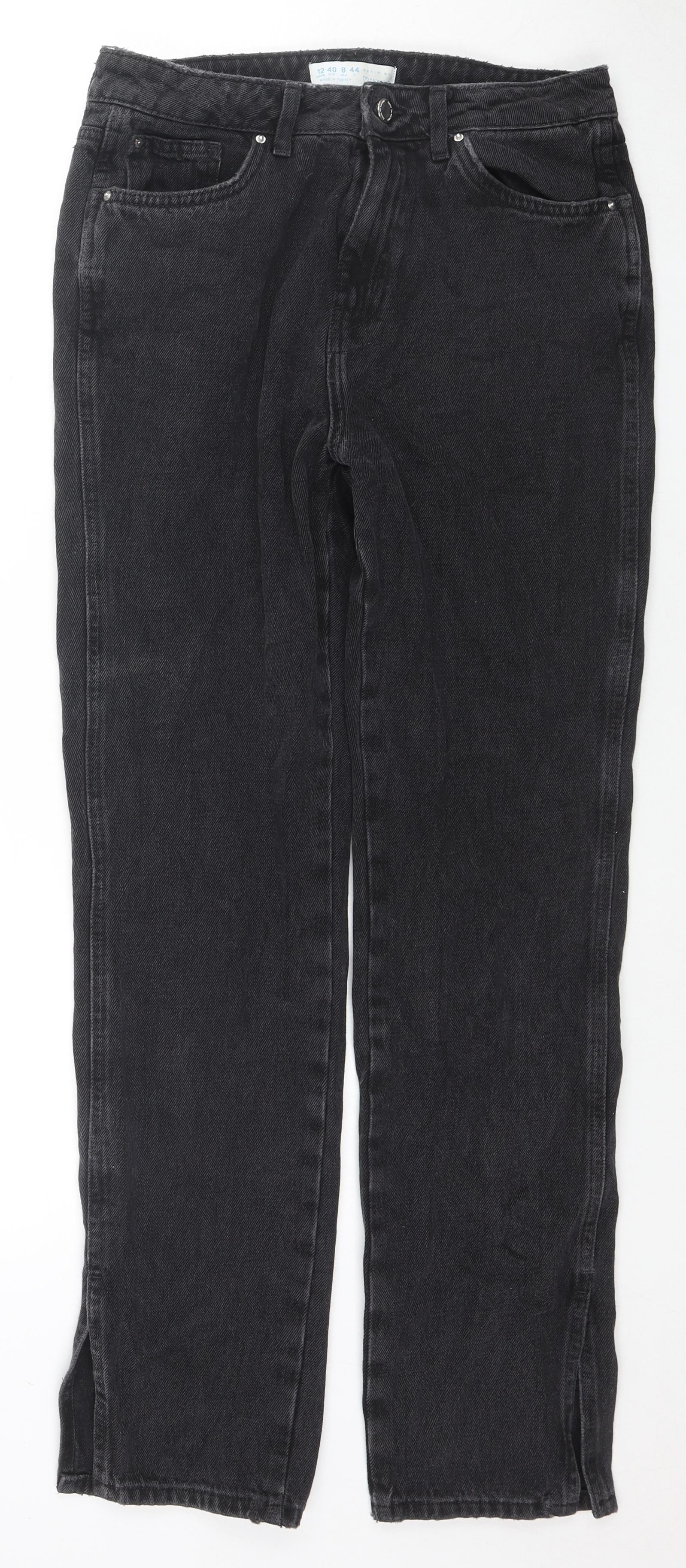 Denim & Co. Womens Black Cotton Straight Jeans Size 12 L30 in Regular Zip - Side Slit(s)