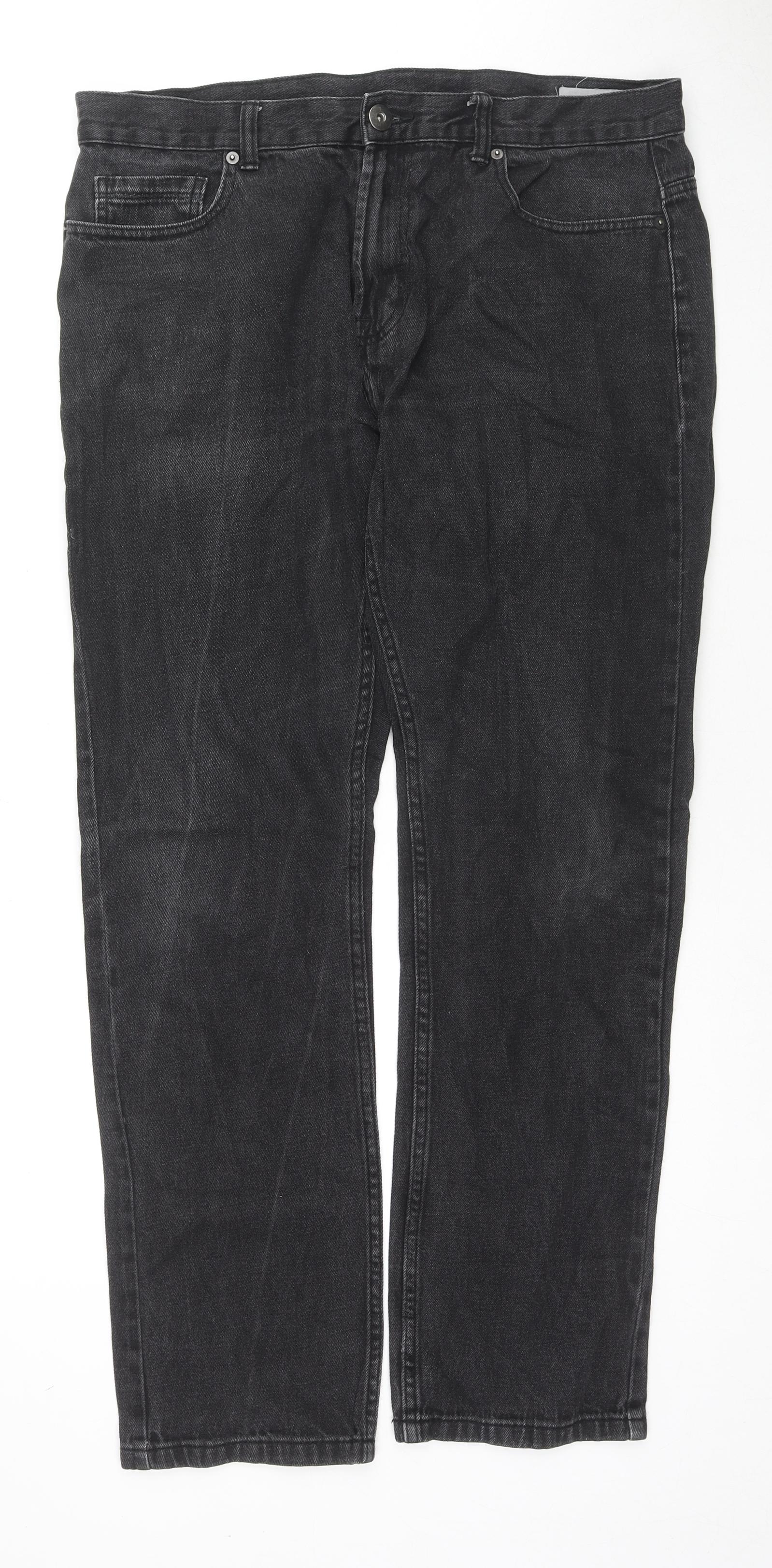 Denim & Co. Womens Black Cotton Straight Jeans Size 34 in L32 in Regular Zip