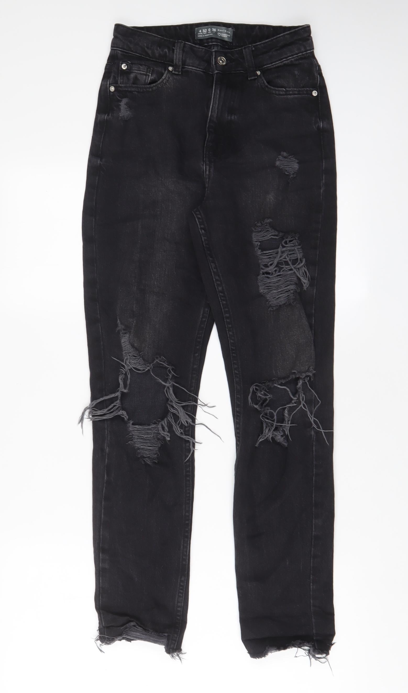 Denim & Co. Womens Black Cotton Straight Jeans Size 4 L28 in Regular Zip