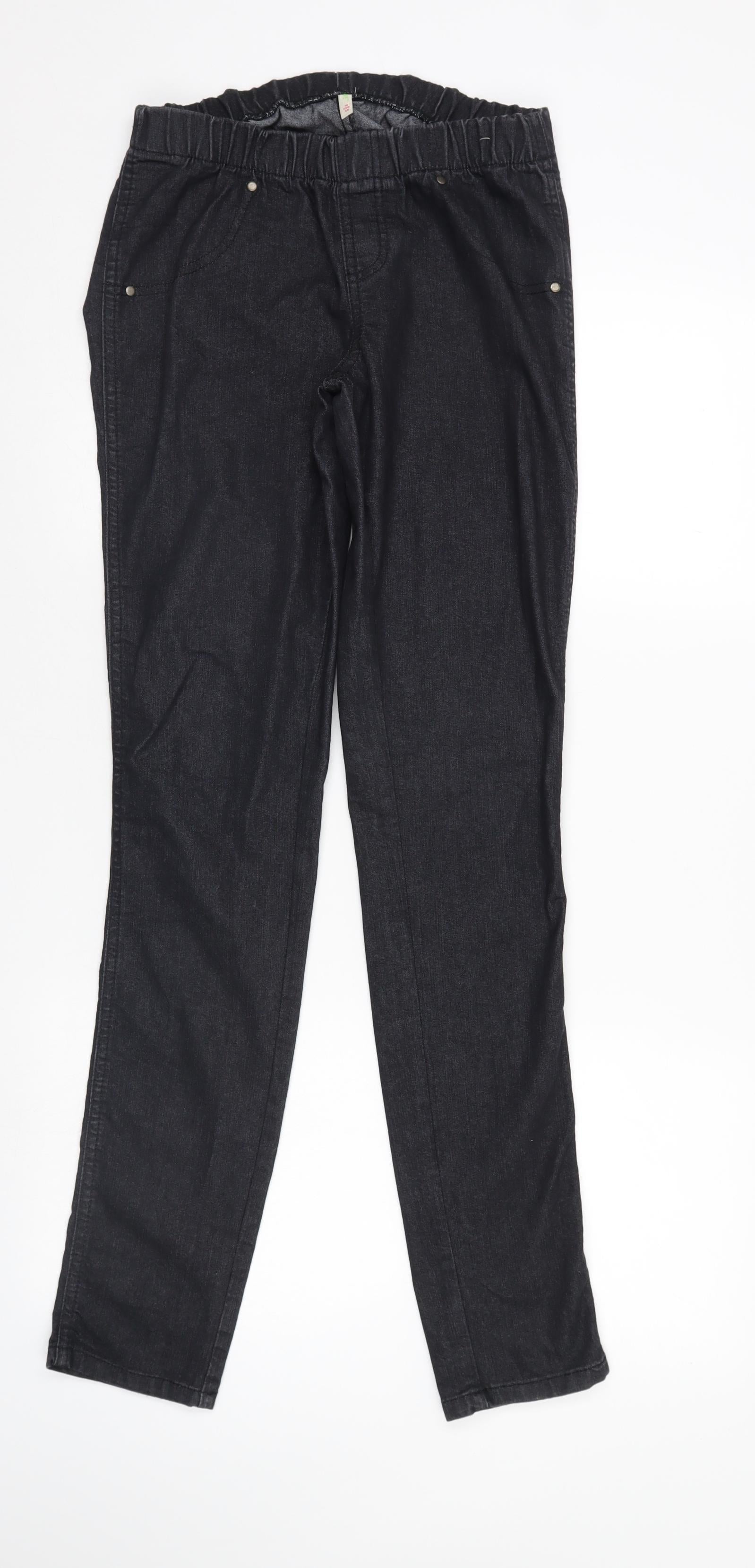 Denim & Co. Womens Black Denim Straight Jeans Size 10 L32 in - elastic waist