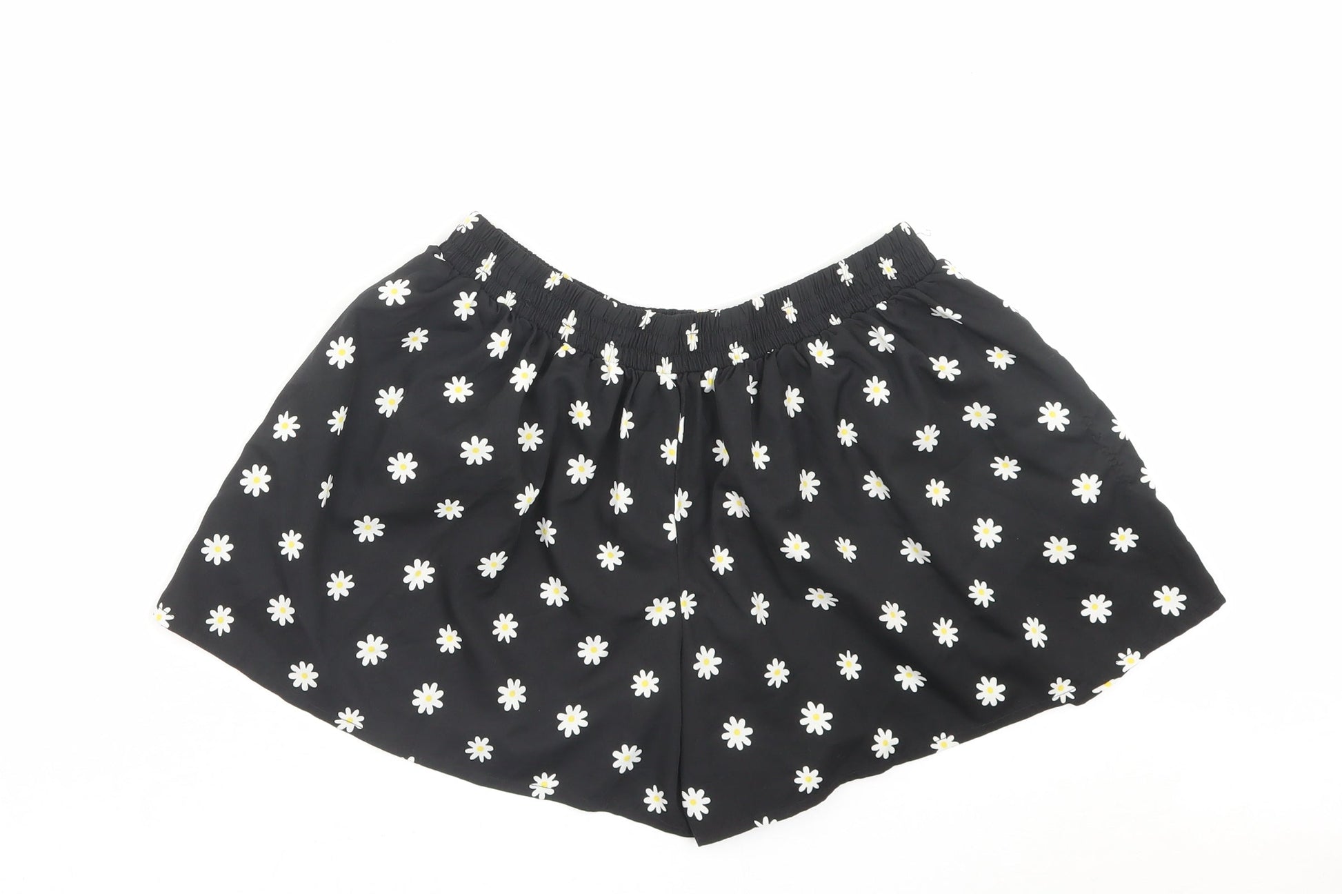 Denim & Co. Womens Black Floral Polyester Paperbag Shorts Size 10 L3 in Regular Pull On