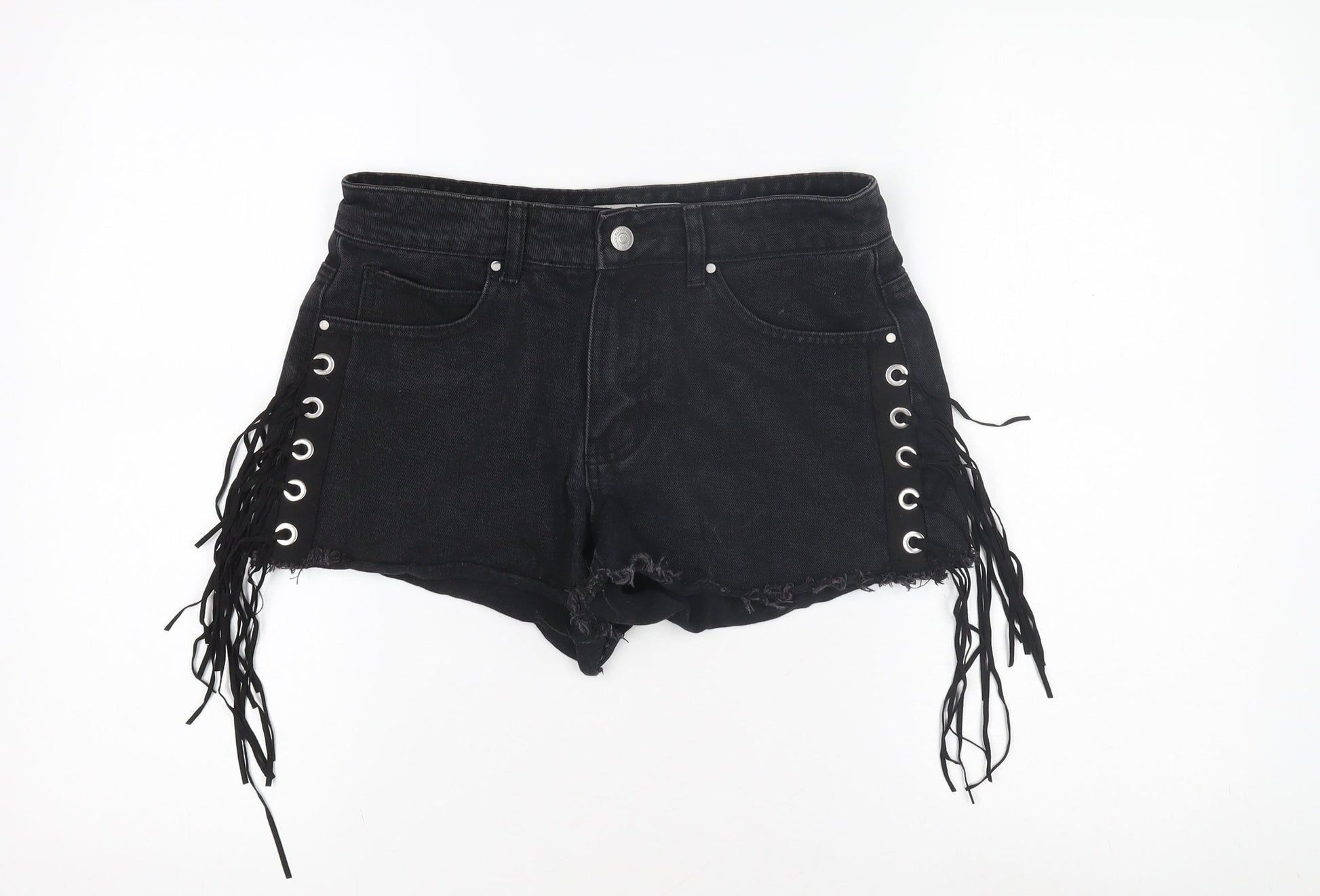 Denim Co Women's Black Hot Pants - Size 8, Fringe Detail