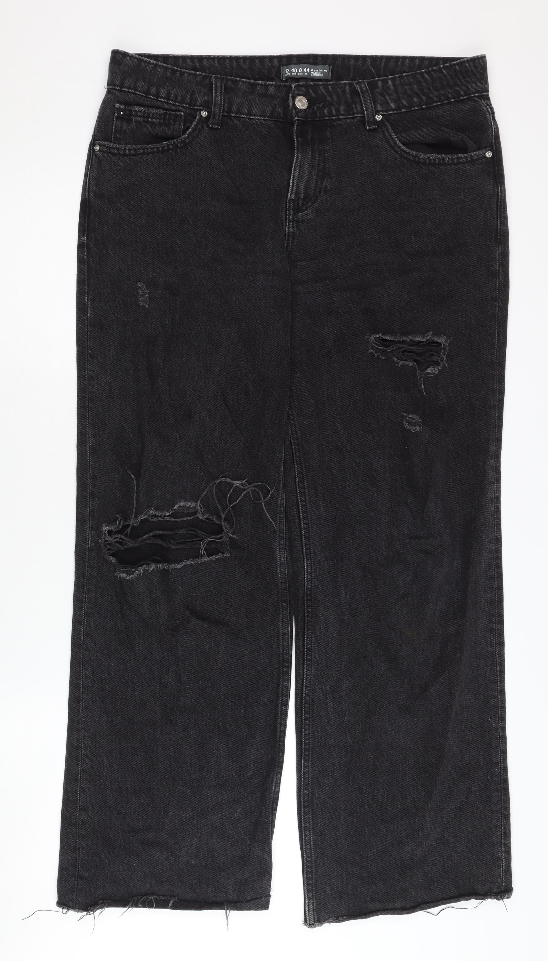 Denim Co Women's Black Wide-Leg Distressed Jeans Size 12