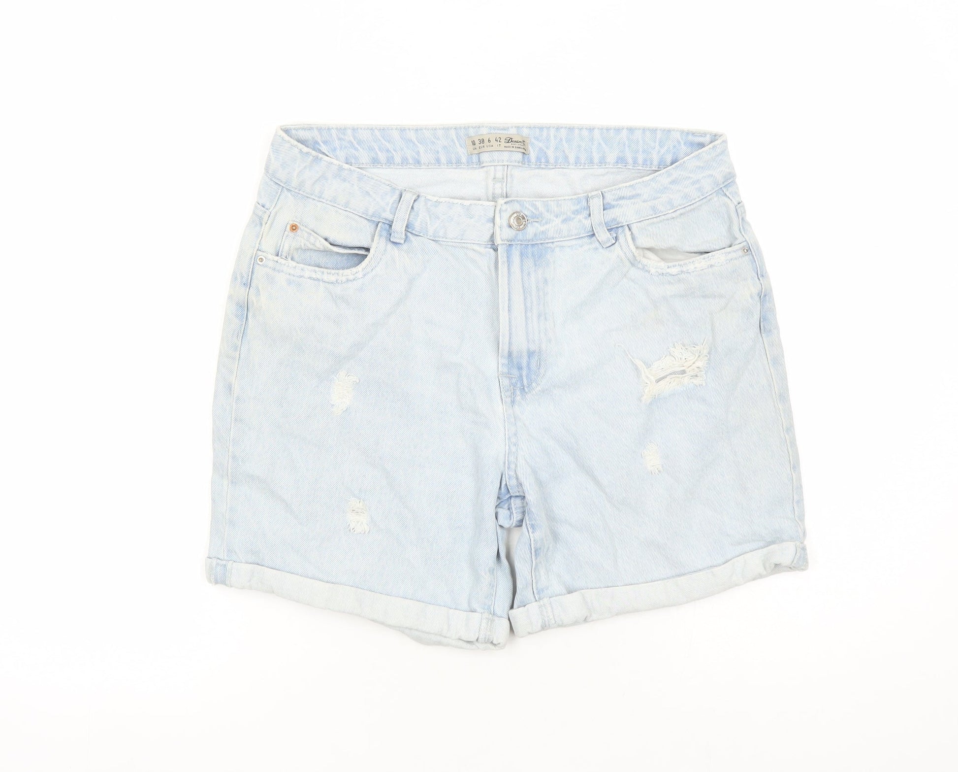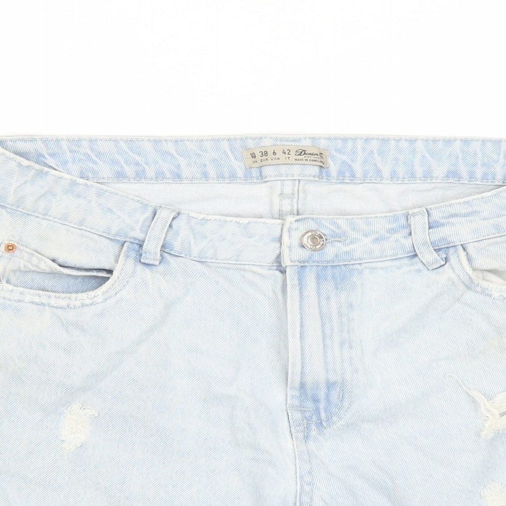 Denim & Co. Womens Blue 100% Cotton Mom Shorts Size 10 L6 in Regular Zip - Distressed Look Pockets