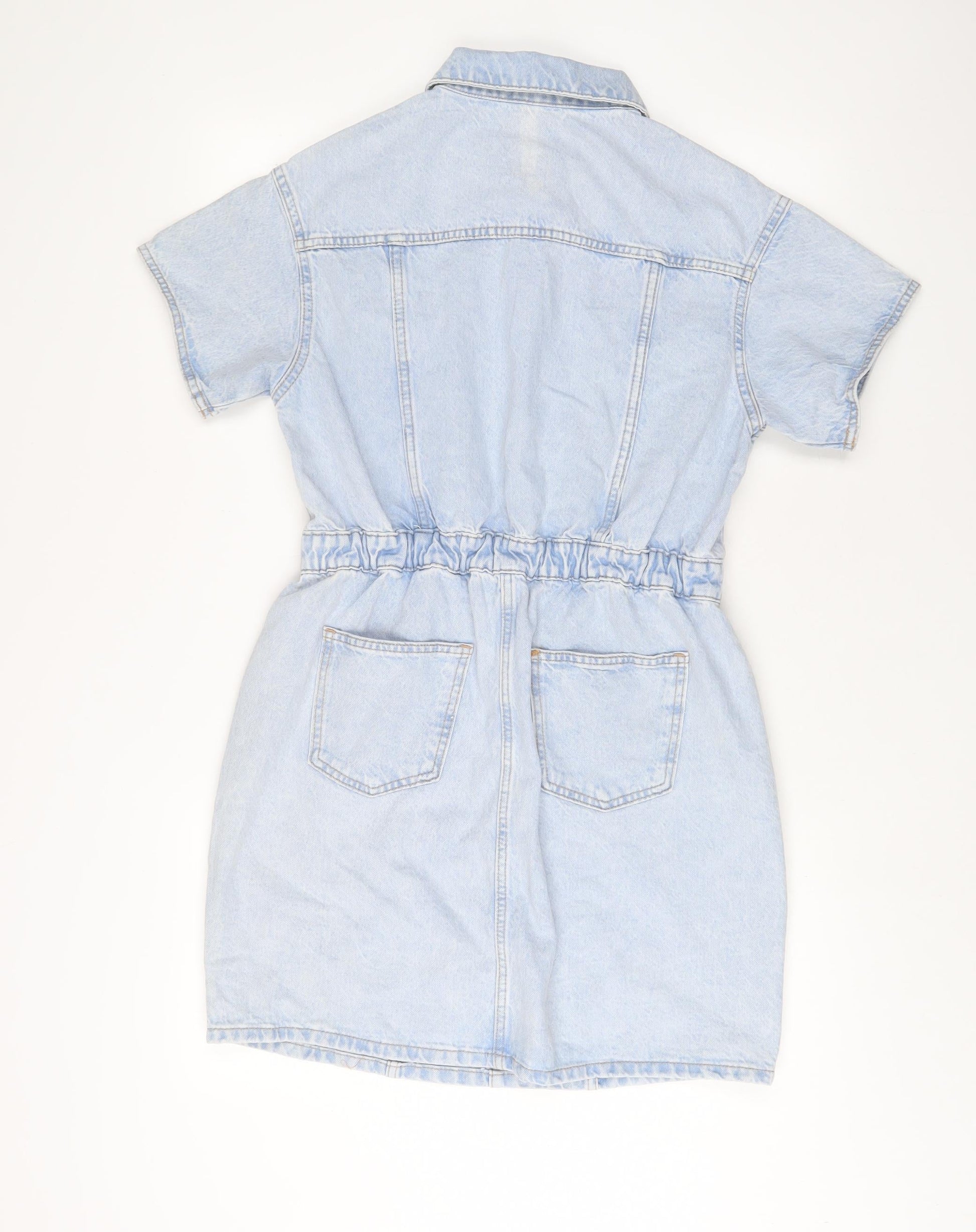 Denim & Co. Womens Blue Cotton A-Line Size S Collared Zip