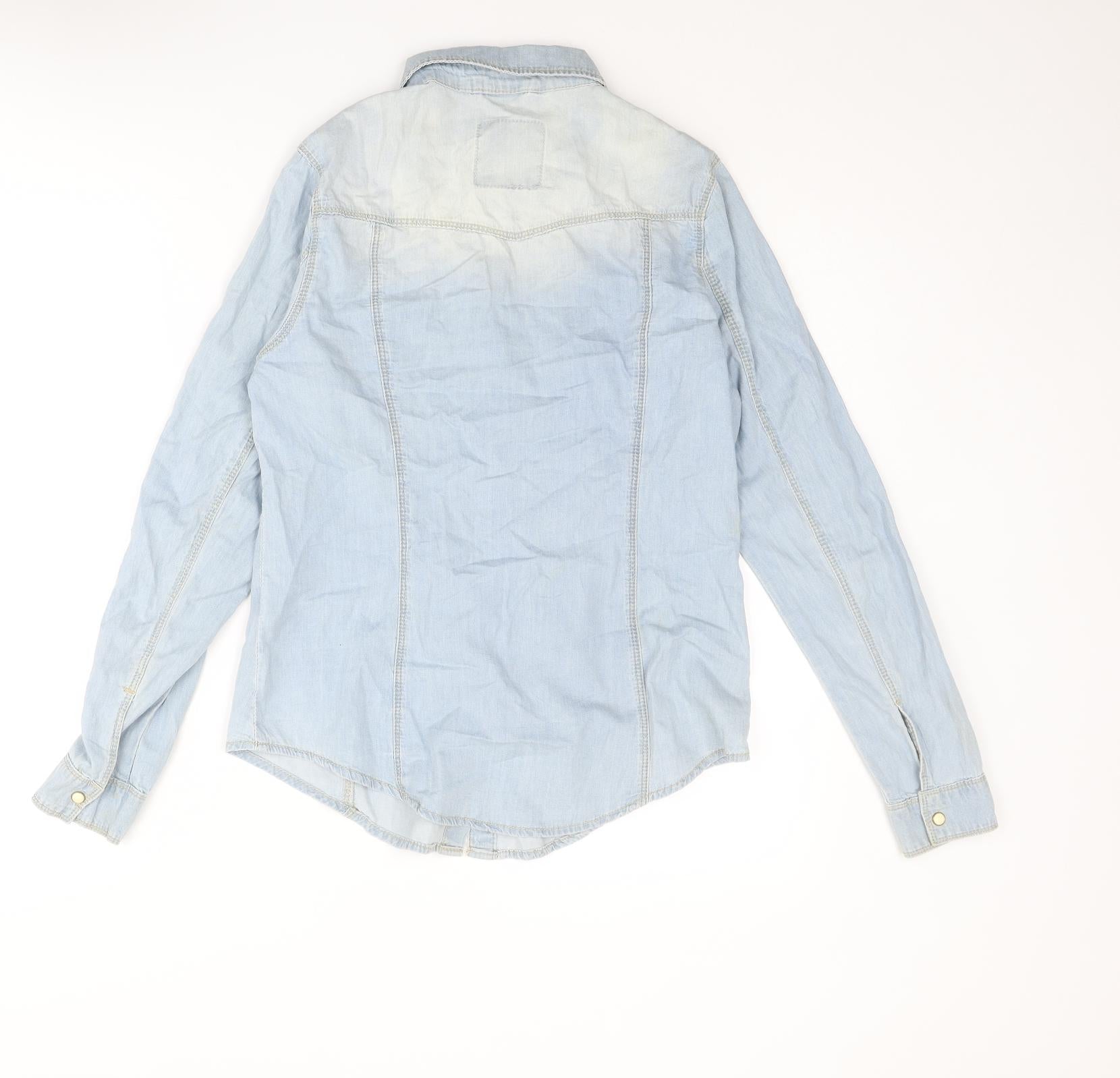 Denim & Co. Womens Blue Cotton Basic Button-Up Size 10 Collared