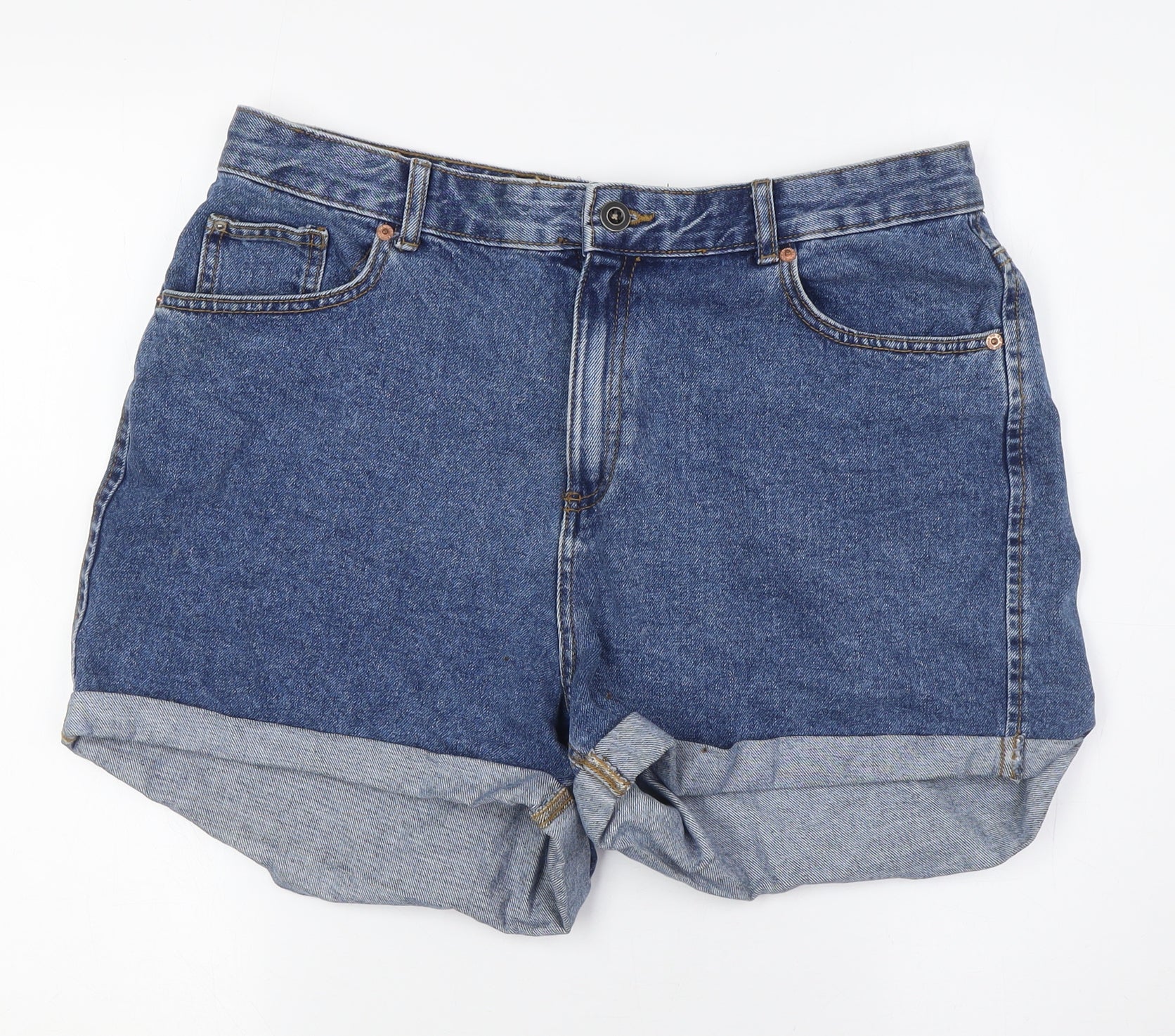 Denim & Co. Womens Blue Cotton Basic Shorts Size 16 L3 in Regular Zip - Turn Ups
