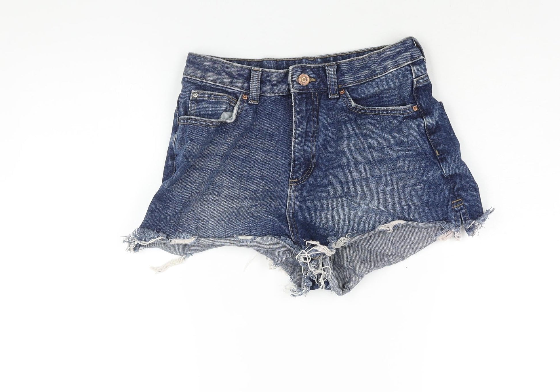 Denim & Co. Womens Blue Cotton Cut-Off Shorts Size 10 Regular Zip - Distressed