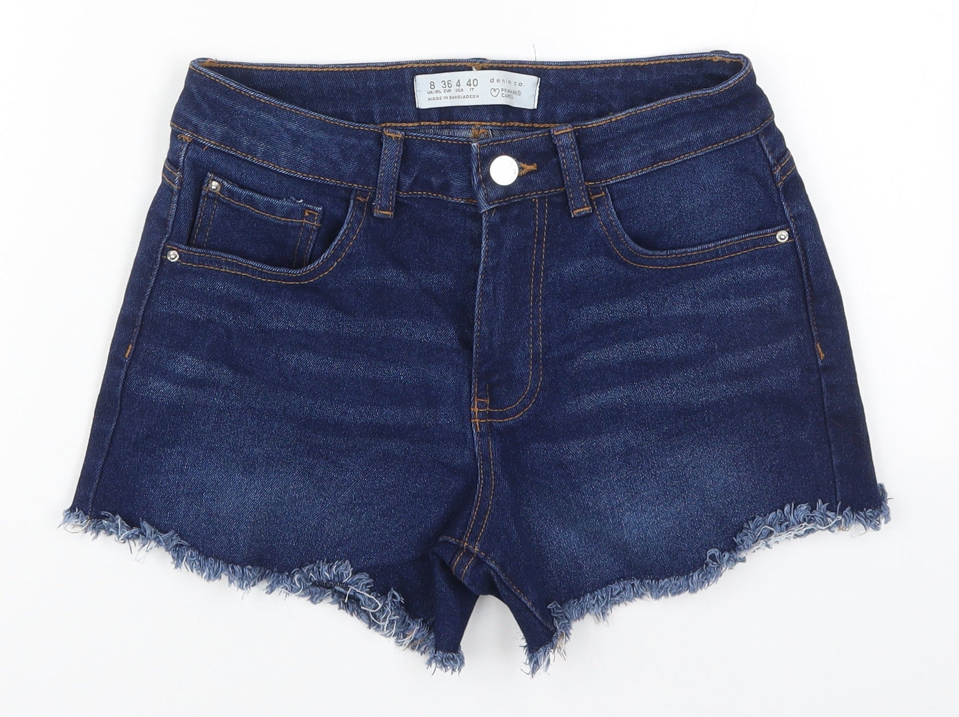 Denim Co Womens Blue Cotton Hot Pants Shorts Size 8 L3 in Regular Button