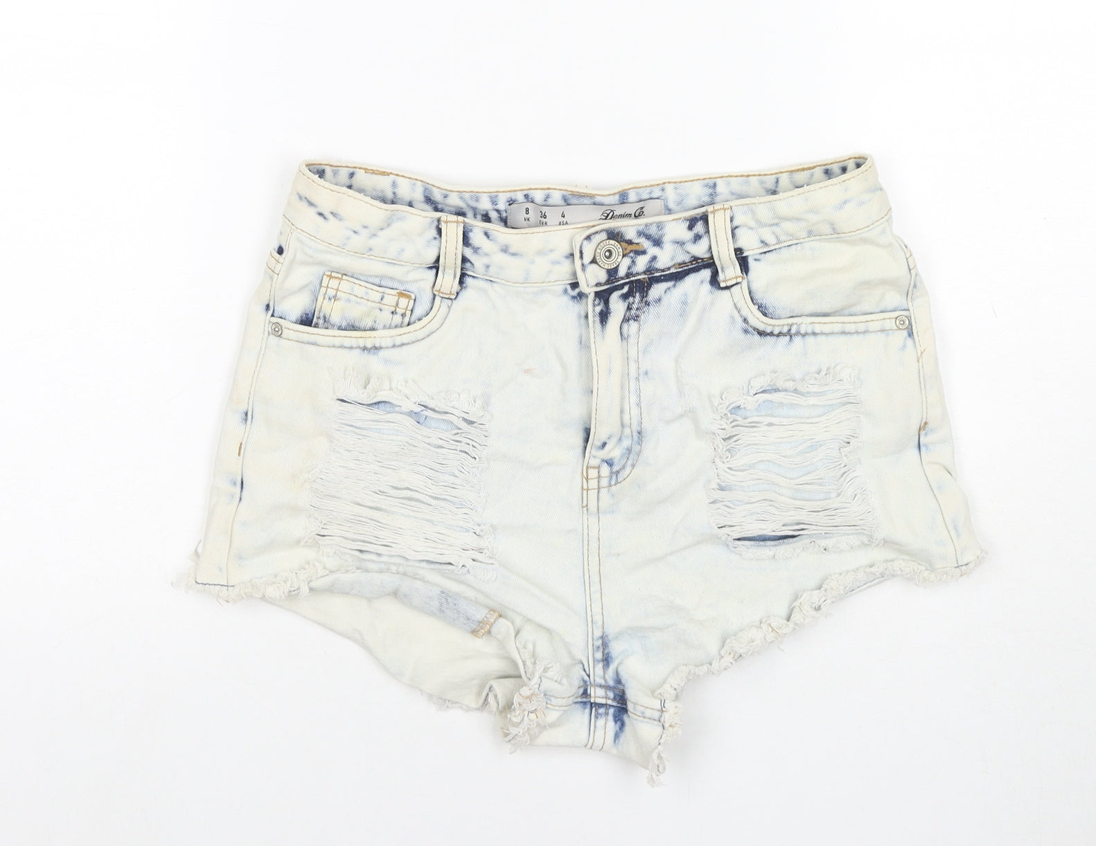 Denim & Co. Womens Blue Cotton Hot Pants Shorts Size 8 L3 in Regular Zip - Distressed