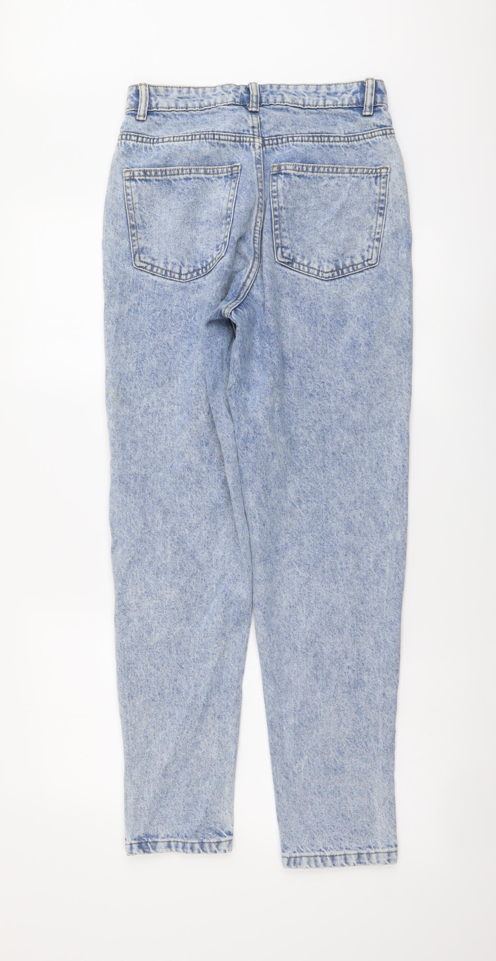 Denim & Co. Womens Blue Cotton Mom Jeans Size 6 L29 in Regular Button - Distressed Look