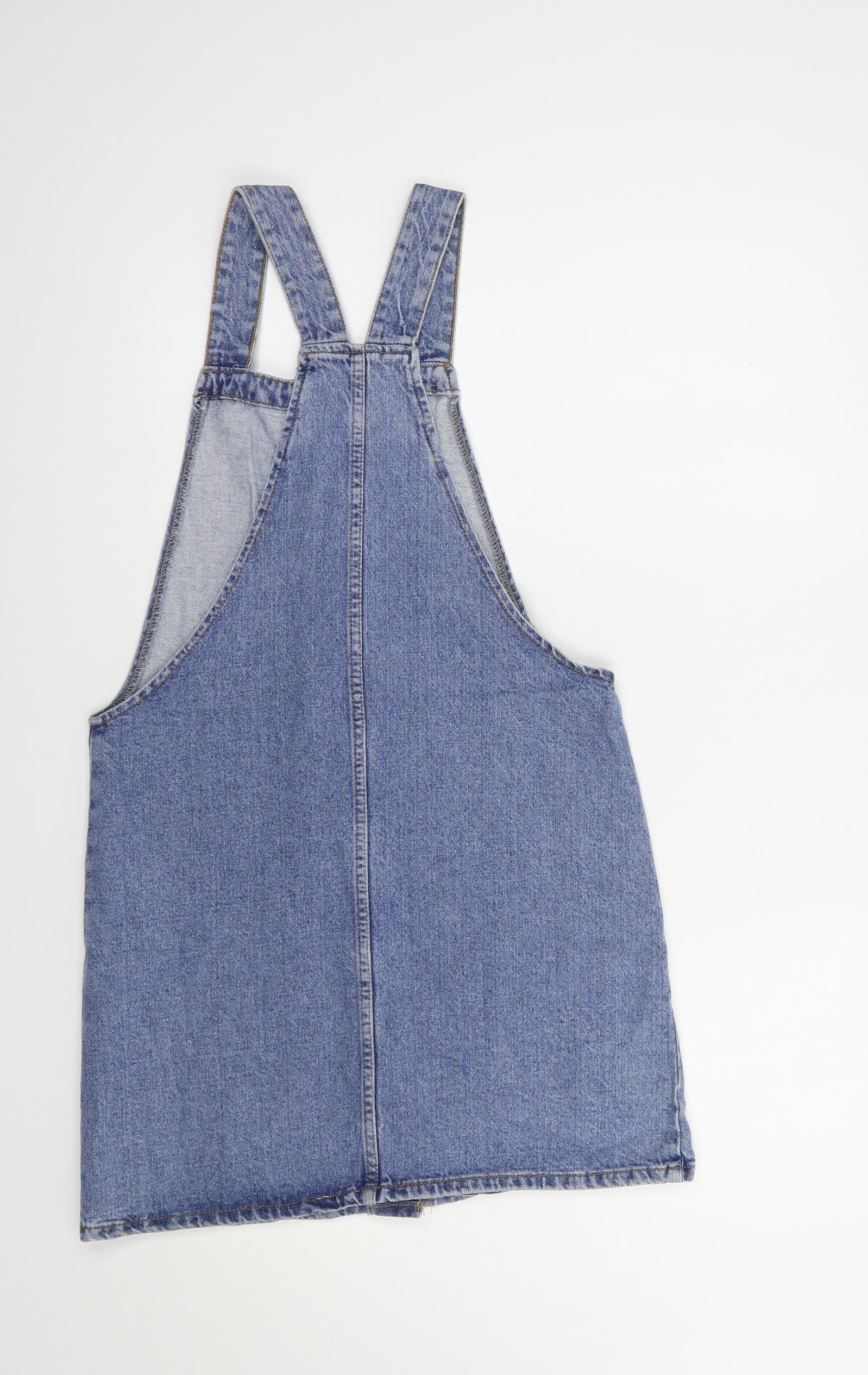 Denim Co. Womens Blue Cotton Pinafore/Dungaree Dress Size 8 Square Neck Button