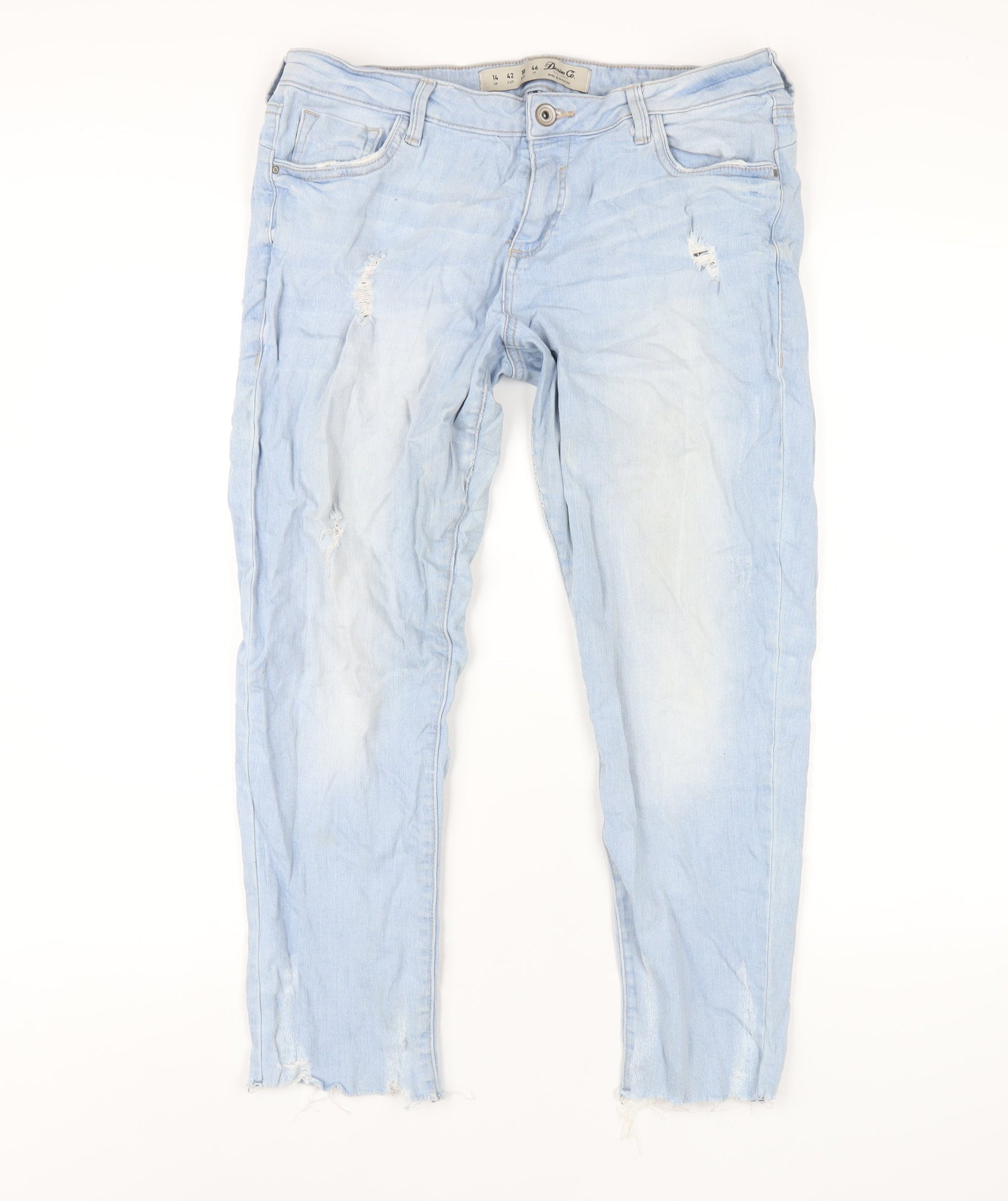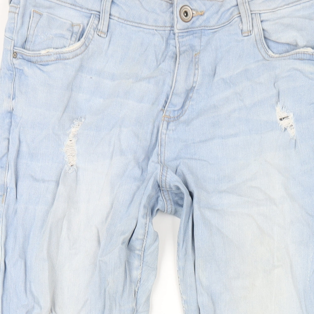 Denim & Co. Womens Blue Cotton Straight Jeans Size 14 L27 in Regular Zip