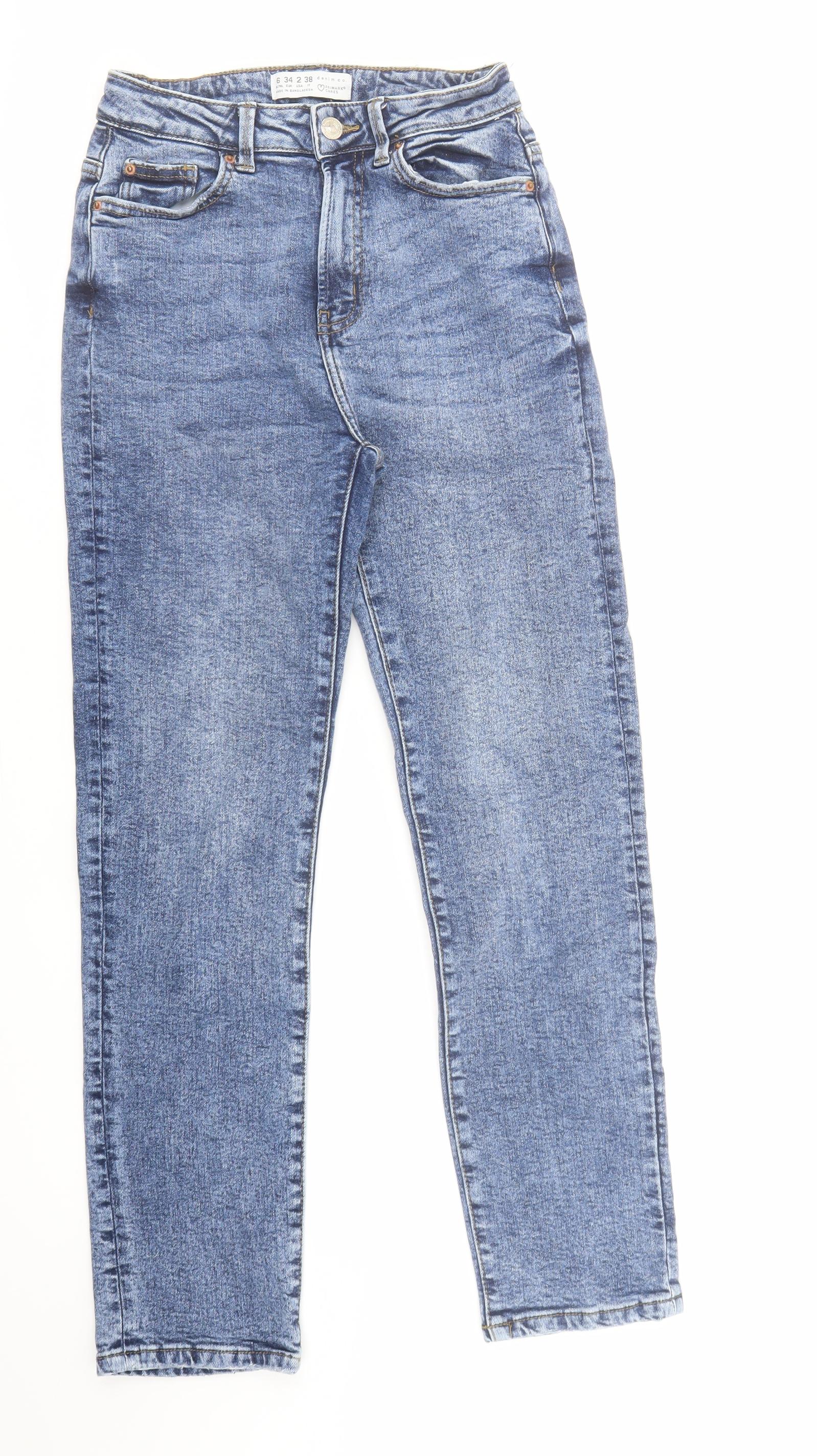 Denim & Co. Womens Blue Cotton Tapered Jeans Size 6 L28 in Regular Zip