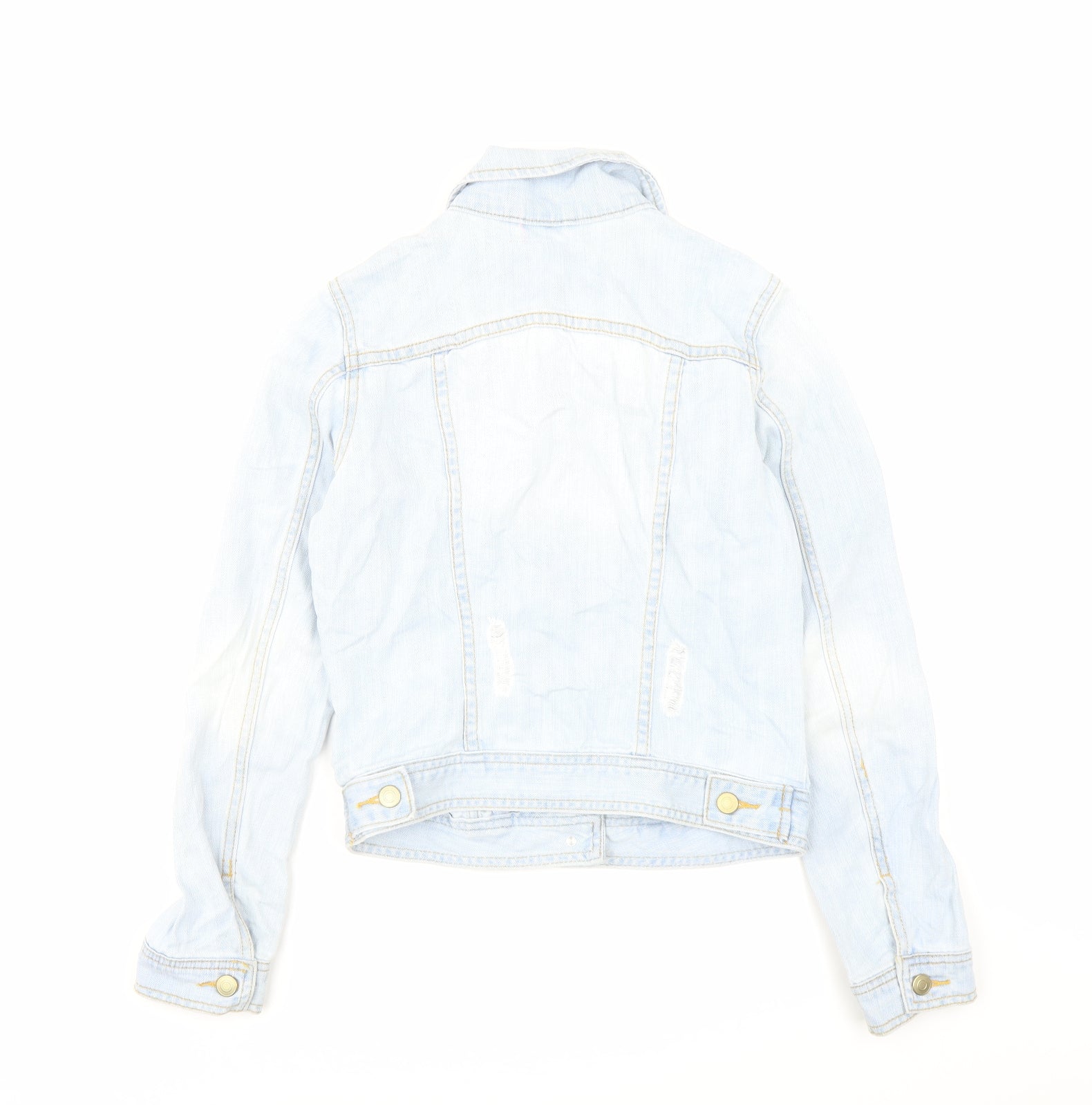 Denim & Co. Womens Blue Jacket Size 6 Button - Distressed Look