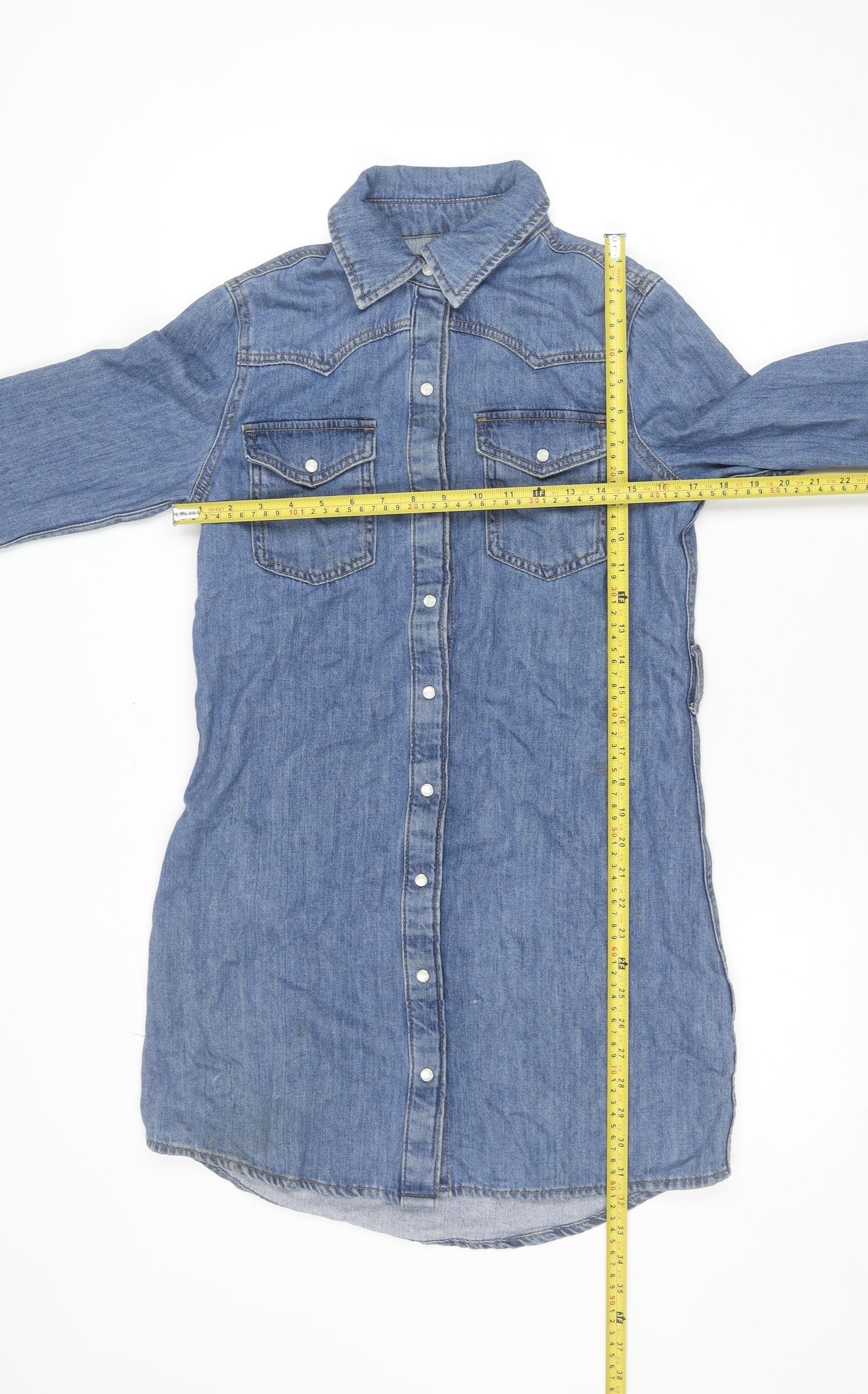 Denim Co. Women's Blue Long Sleeve Shirt Dress Size 8 Casual Denim