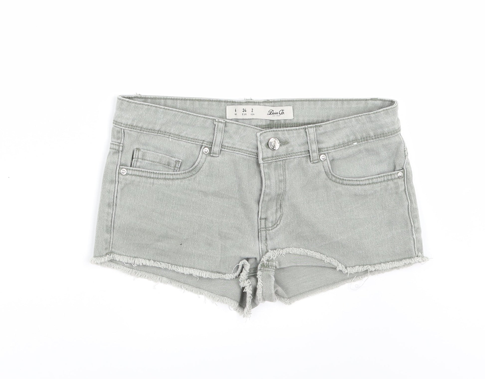 Denim & Co. Womens Green Denim Cut-Off Shorts Size 6