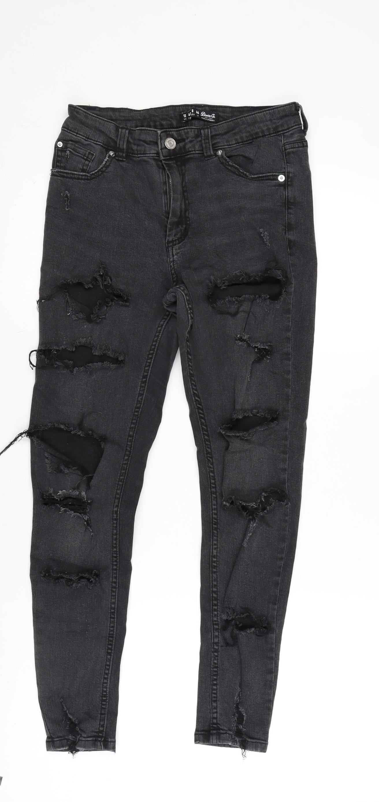 Denim & Co. Womens Grey Cotton Blend Straight Jeans Size 12 L25.5 in Regular Zip