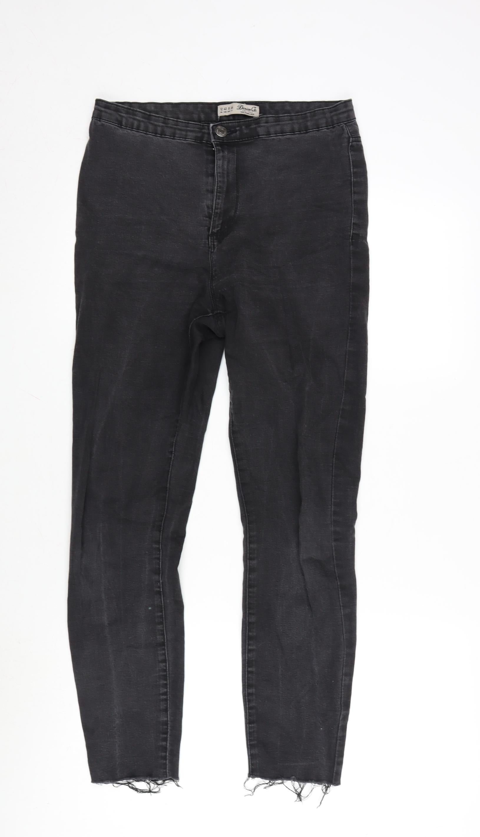 Denim & Co. Womens Grey Cotton Blend Tapered Jeans Size 12 L27 in Regular Zip - Raw Hem