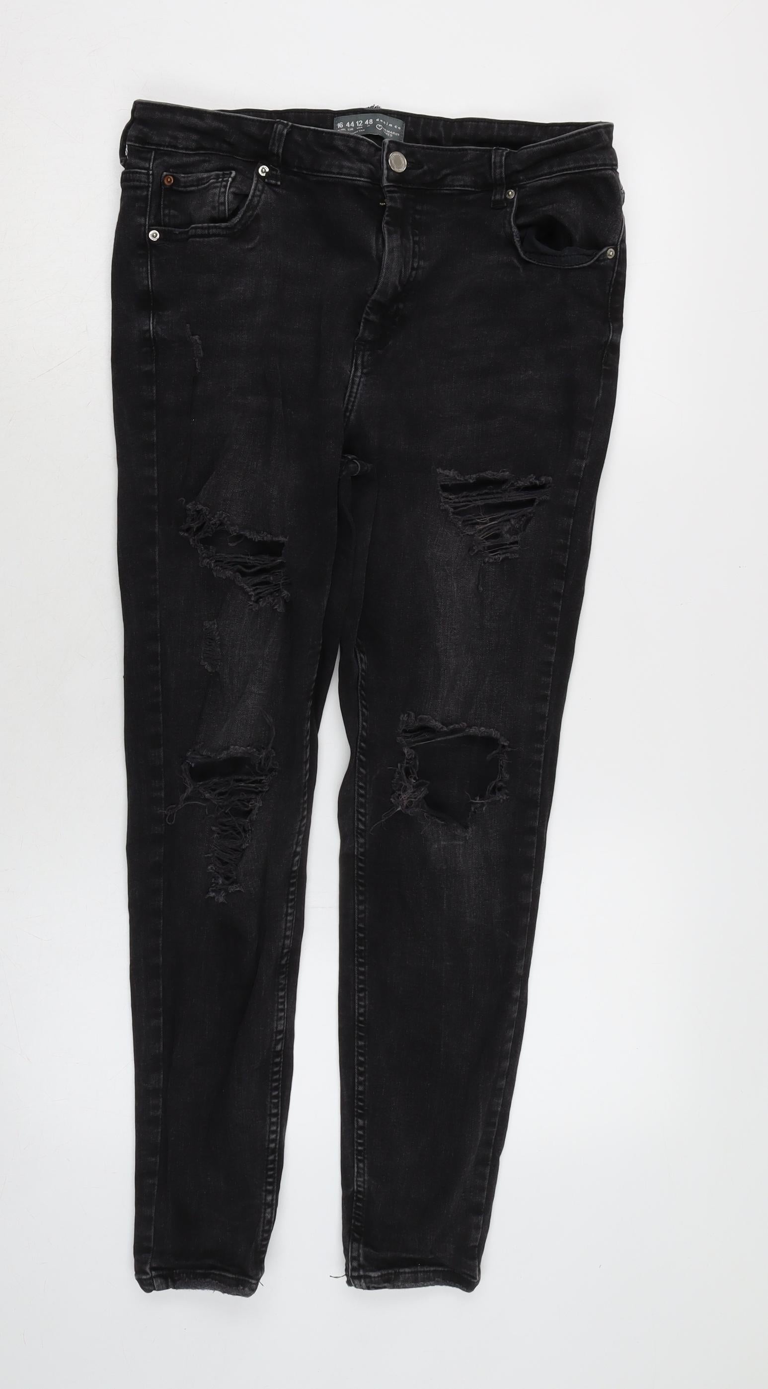 Denim & Co. Womens Grey Cotton Blend Tapered Jeans Size 16 L26 in Regular Zip