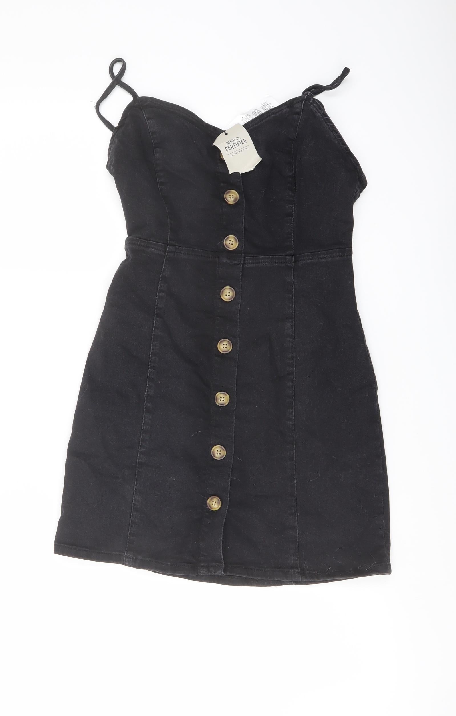 Denim & Co. Womens Grey Cotton Mini Size 8 Sweetheart Button