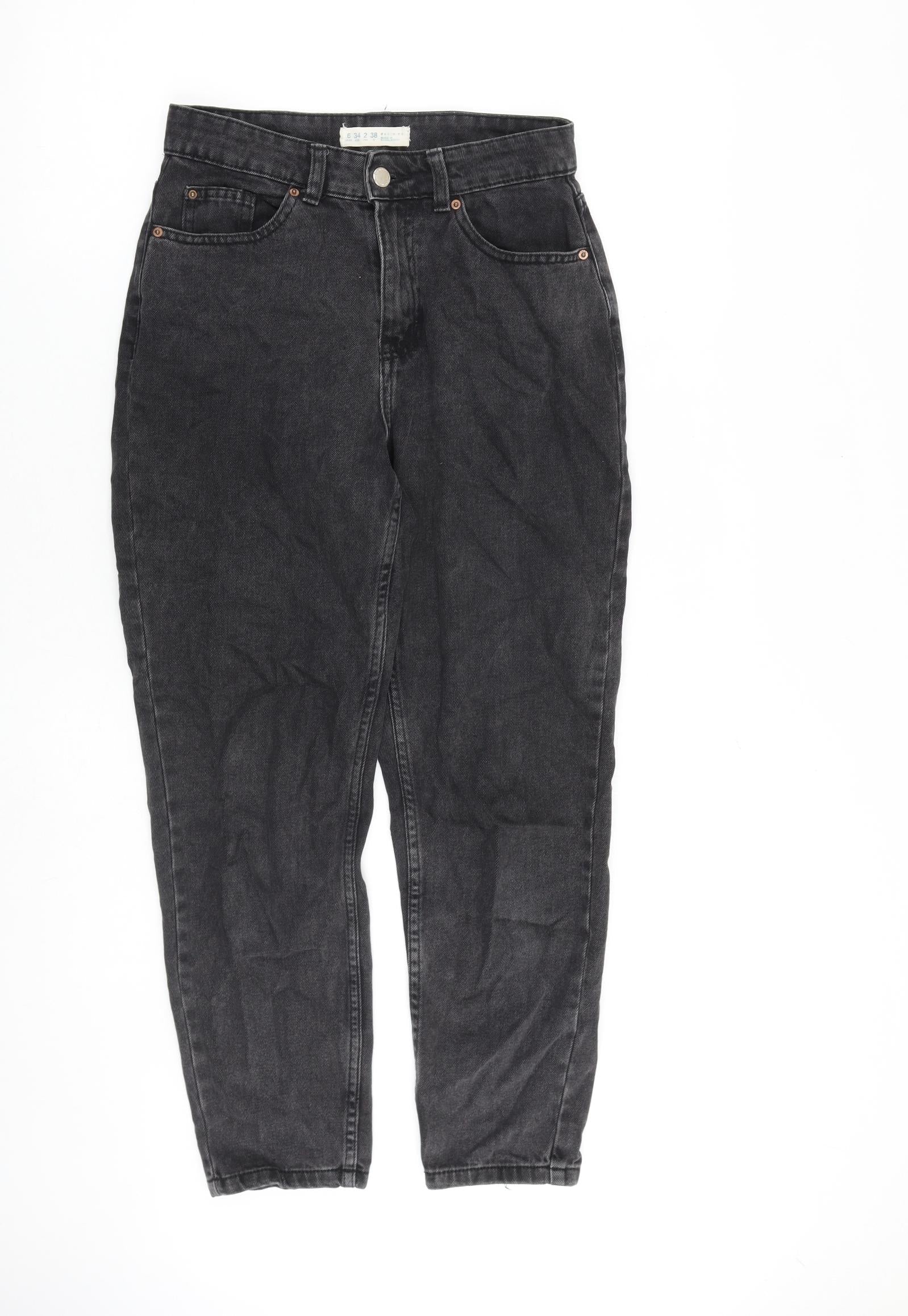 Denim & Co. Womens Grey Cotton Mom Jeans Size 6 L25 in Regular Zip