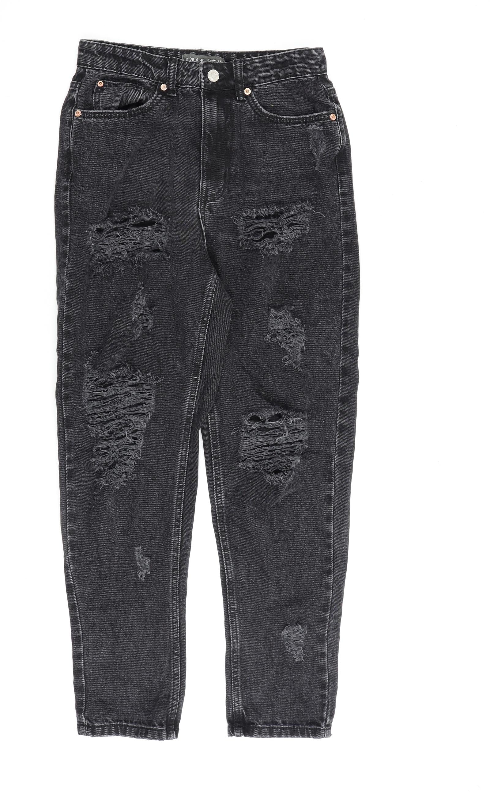 Denim & Co. Womens Grey Cotton Mom Jeans Size 8 L27 in Regular Zip