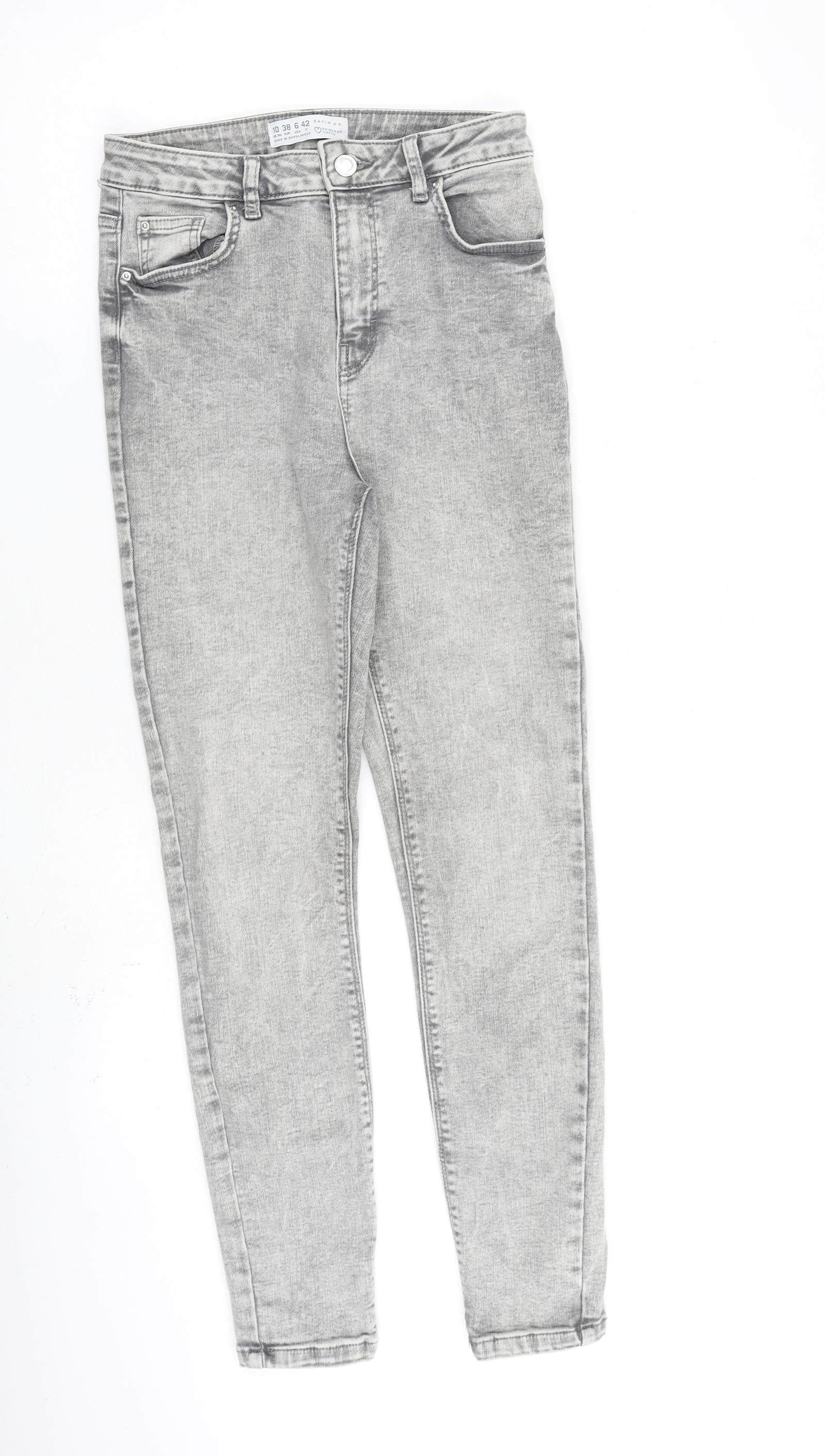 Denim & Co. Womens Grey Cotton Skinny Jeans Size 10 L28 in Regular Zip