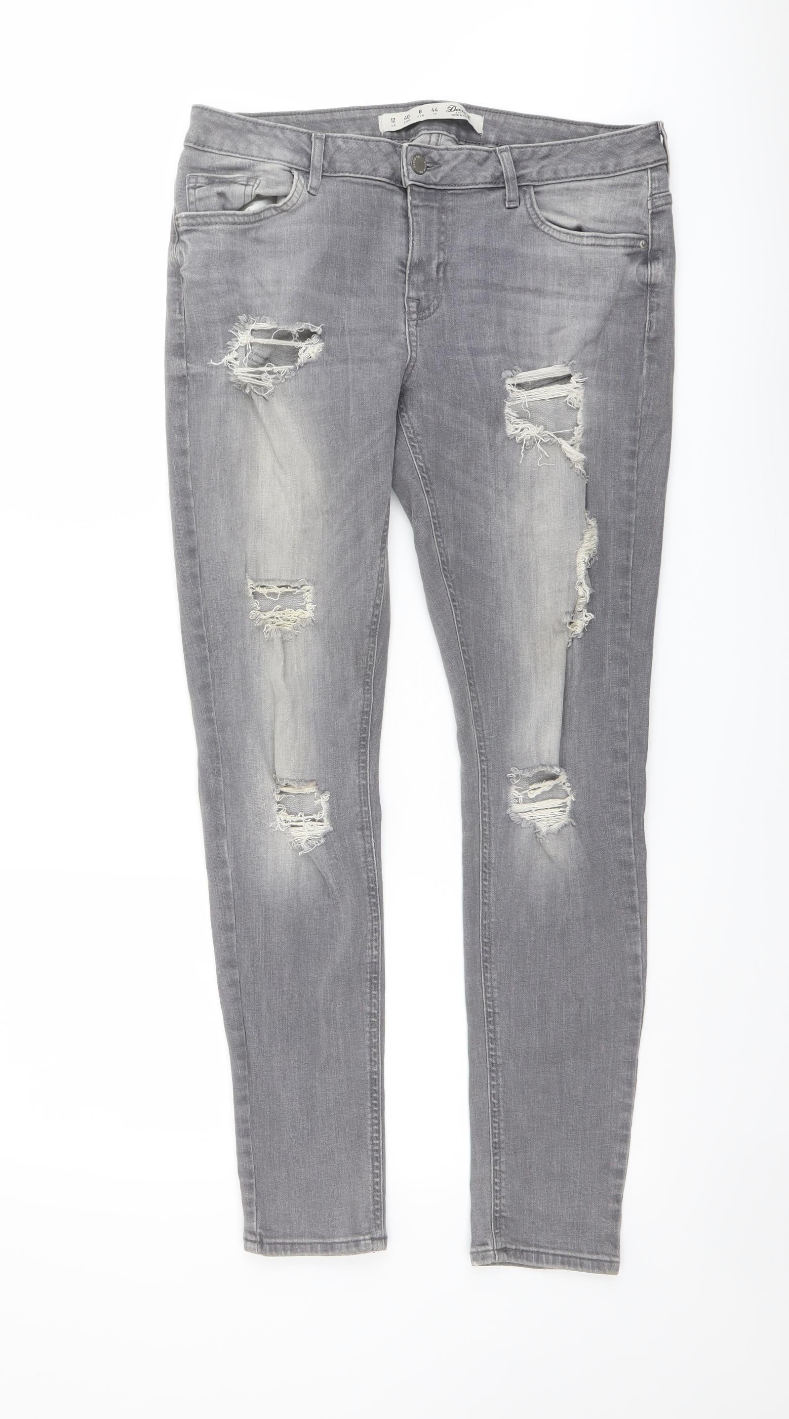Denim & Co. Womens Grey Cotton Skinny Jeans Size 12 L29 in Regular Button