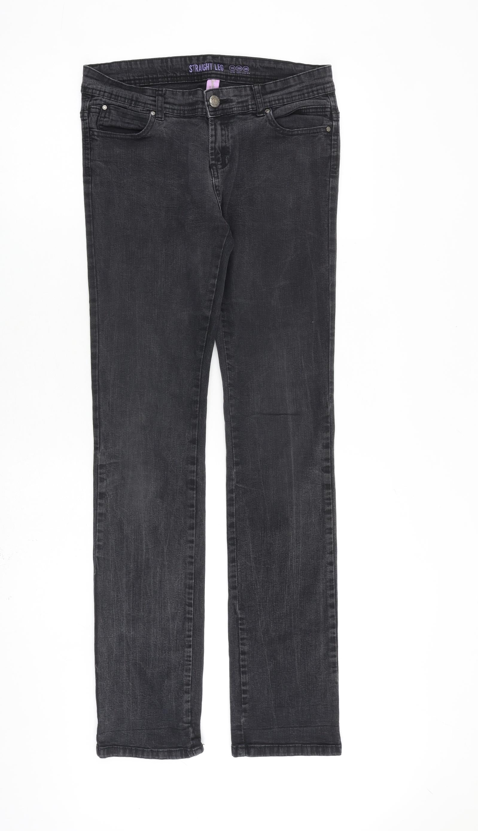 Denim & Co. Womens Grey Cotton Straight Jeans Size 10 L32 in Regular Zip