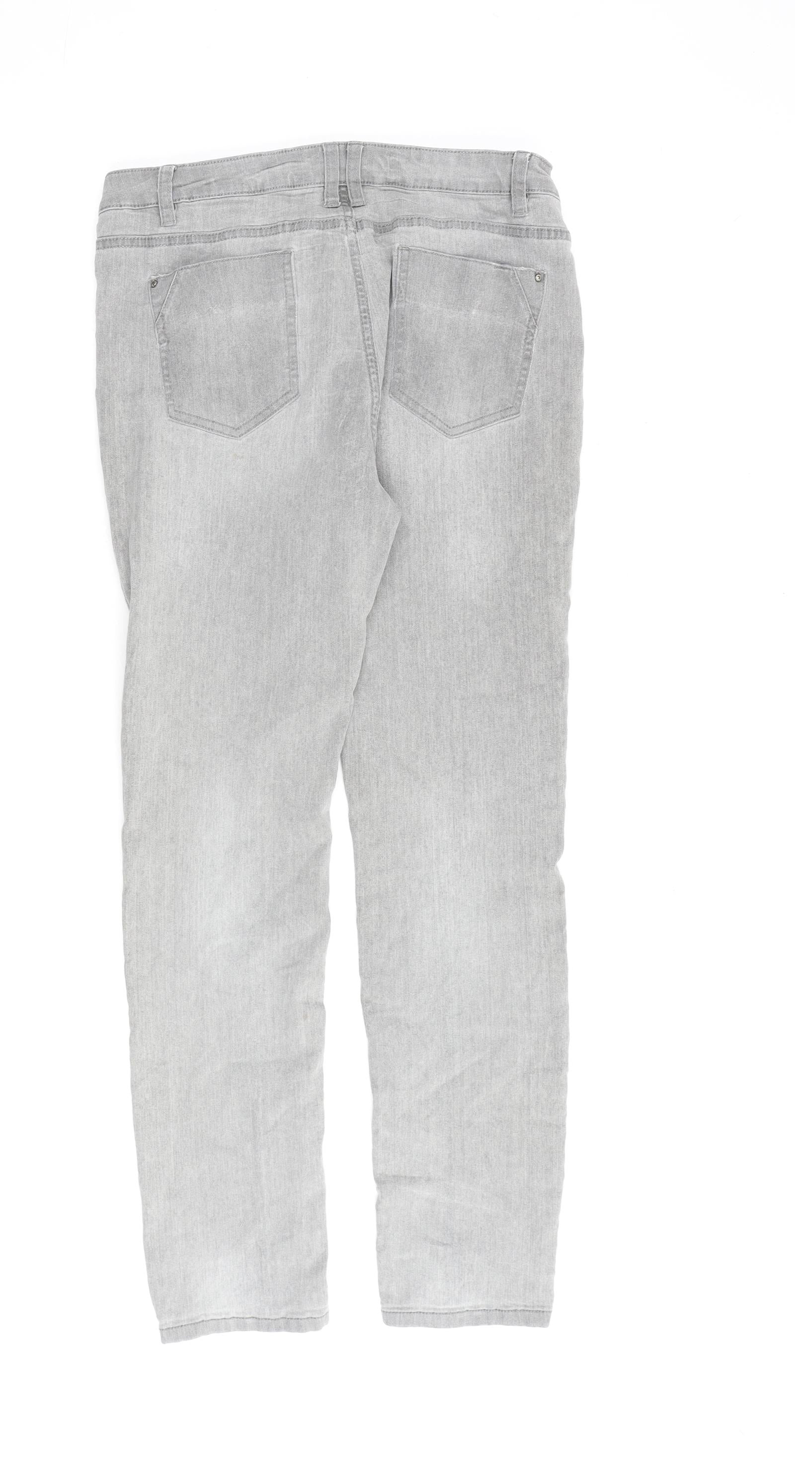 Denim & Co. Womens Grey Cotton Straight Jeans Size 12 L30 in Regular Zip
