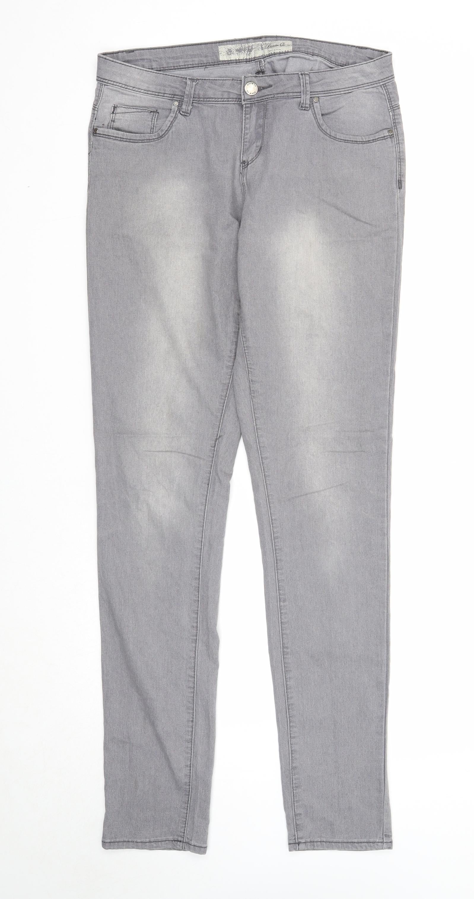 Denim & Co. Womens Grey Cotton Straight Jeans Size 12 Regular Zip