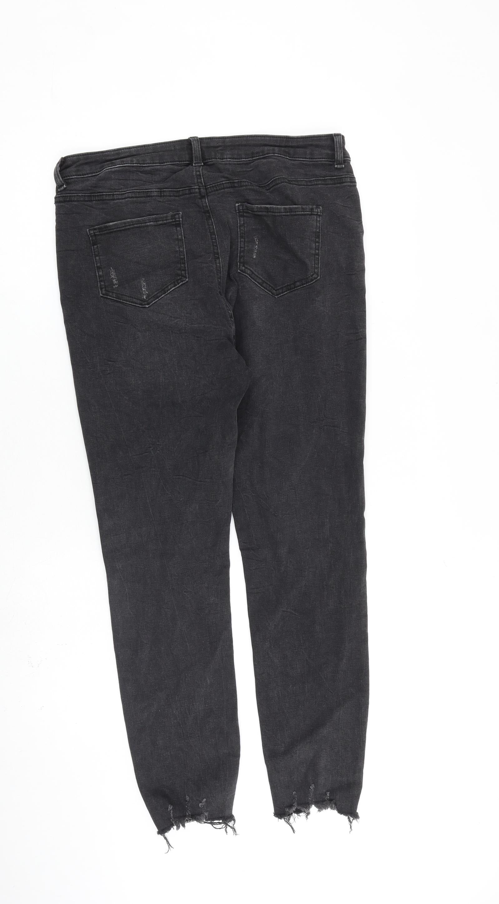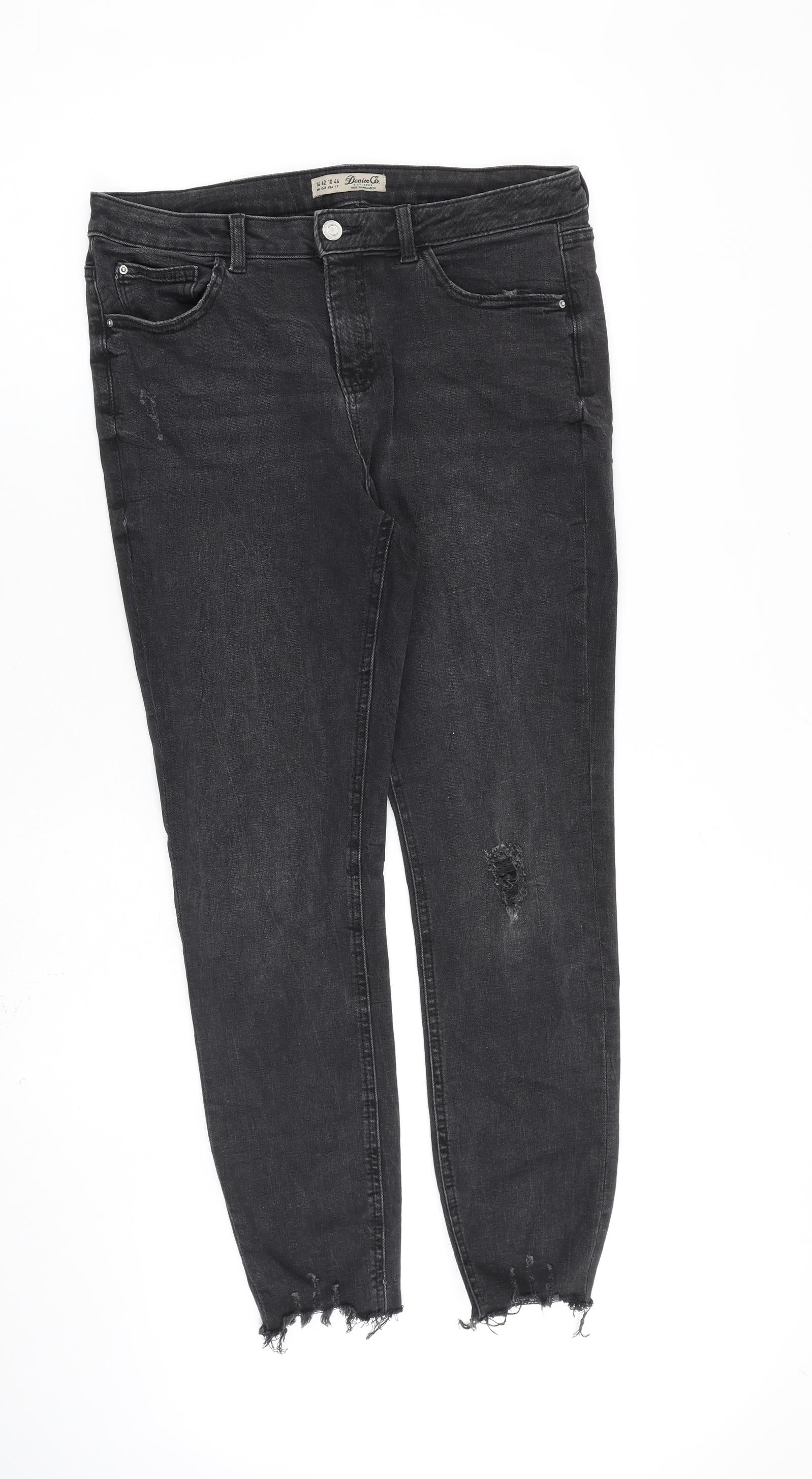 Denim & Co. Womens Grey Cotton Straight Jeans Size 14 L27 in Regular Zip