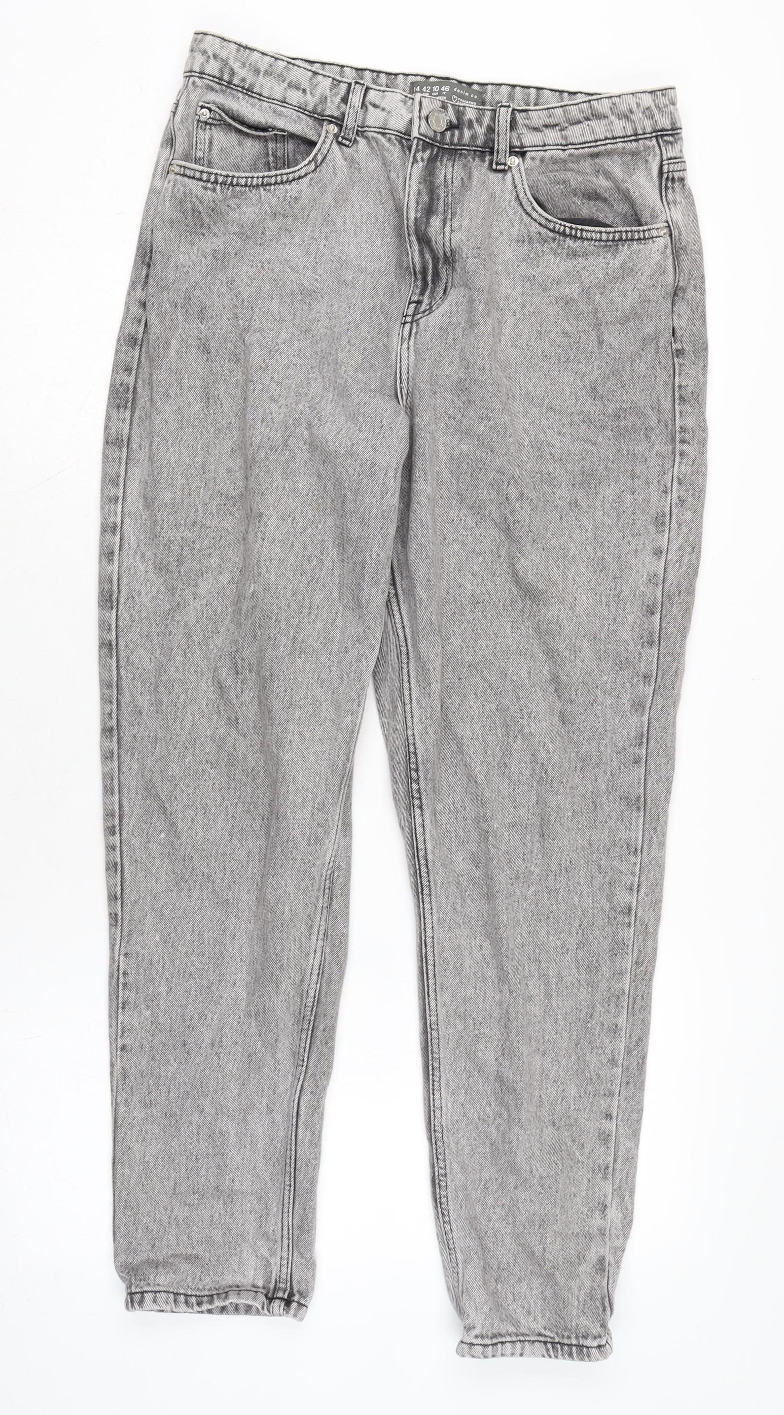 Denim & Co. Womens Grey Cotton Straight Jeans Size 14 L28.5 in Regular Zip