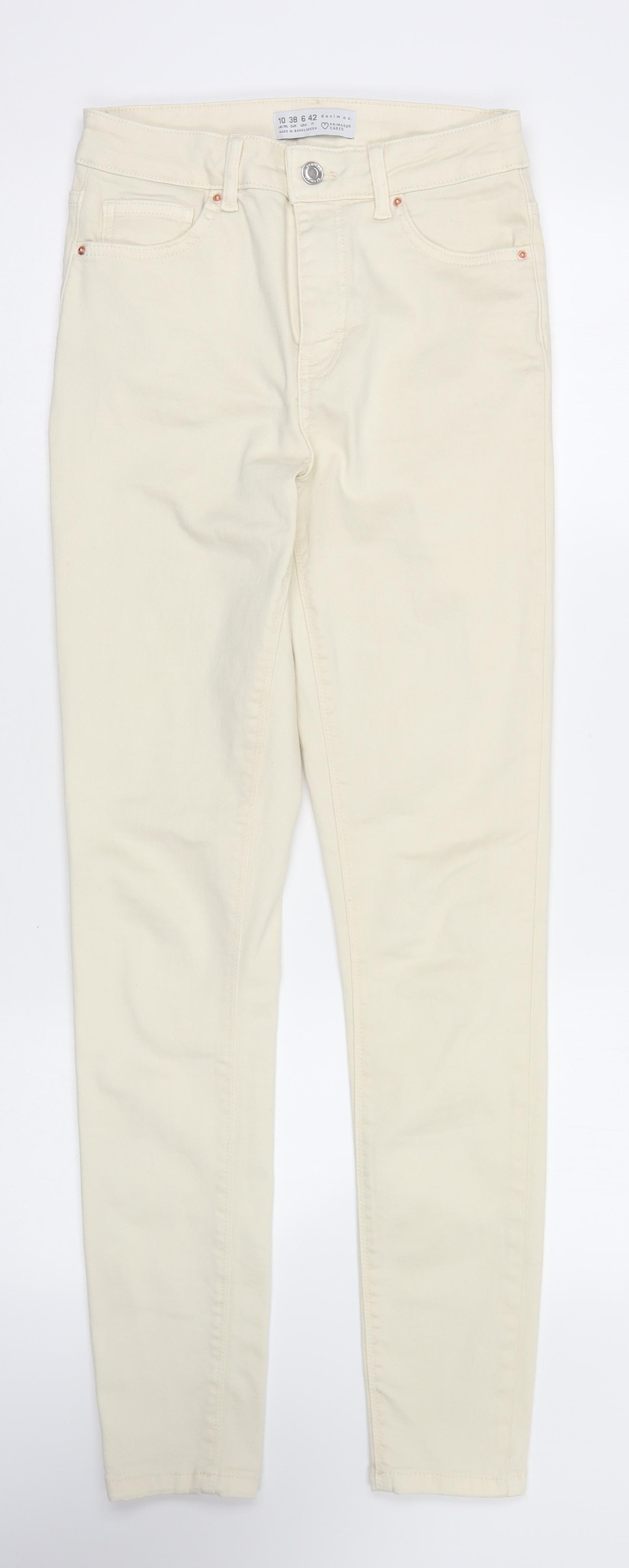 Denim & Co. Womens Ivory Cotton Skinny Jeans Size 10 L27 in Regular Button