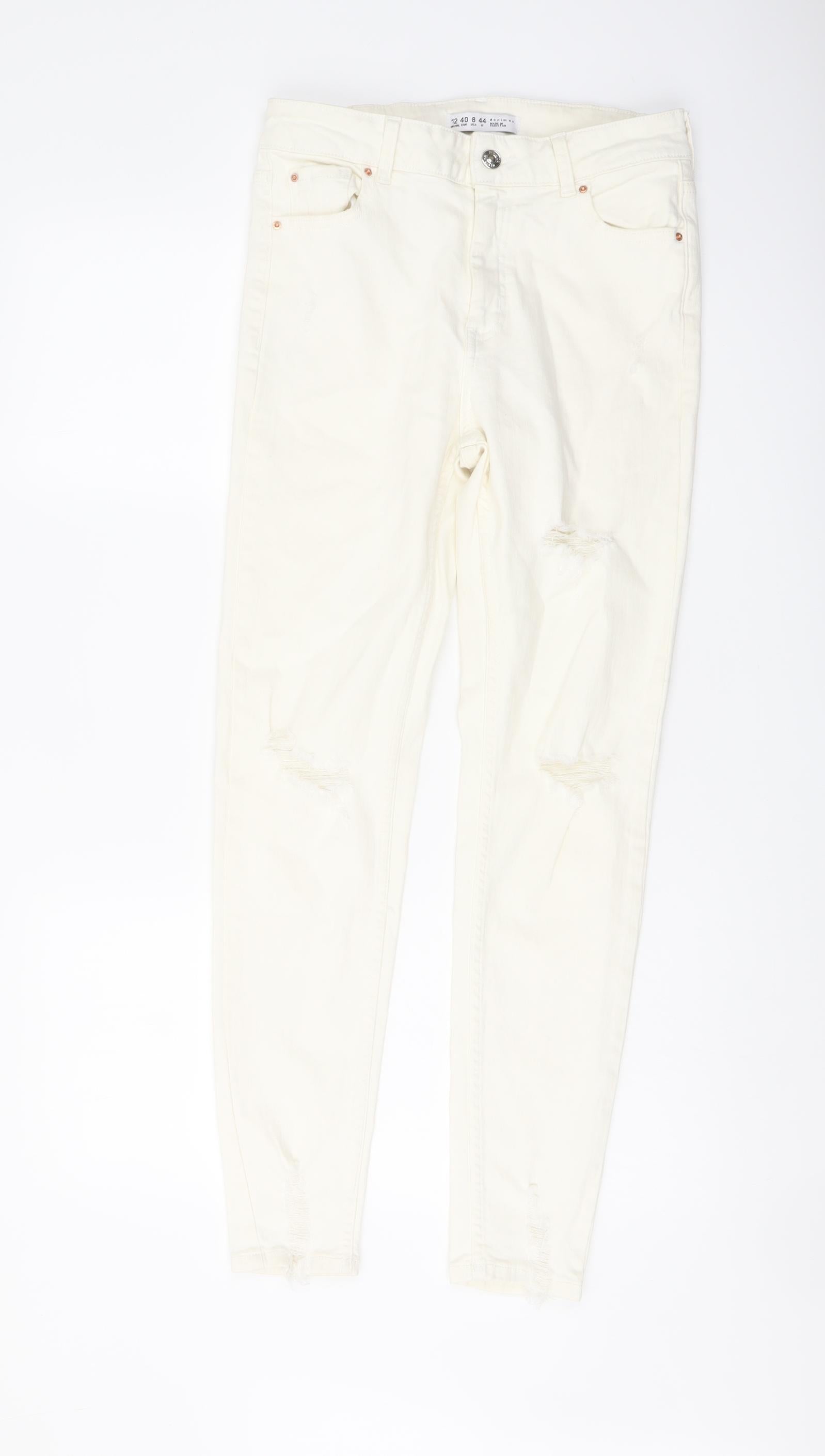Denim & Co. Womens Ivory Cotton Skinny Jeans Size 12 L28 in Regular Button