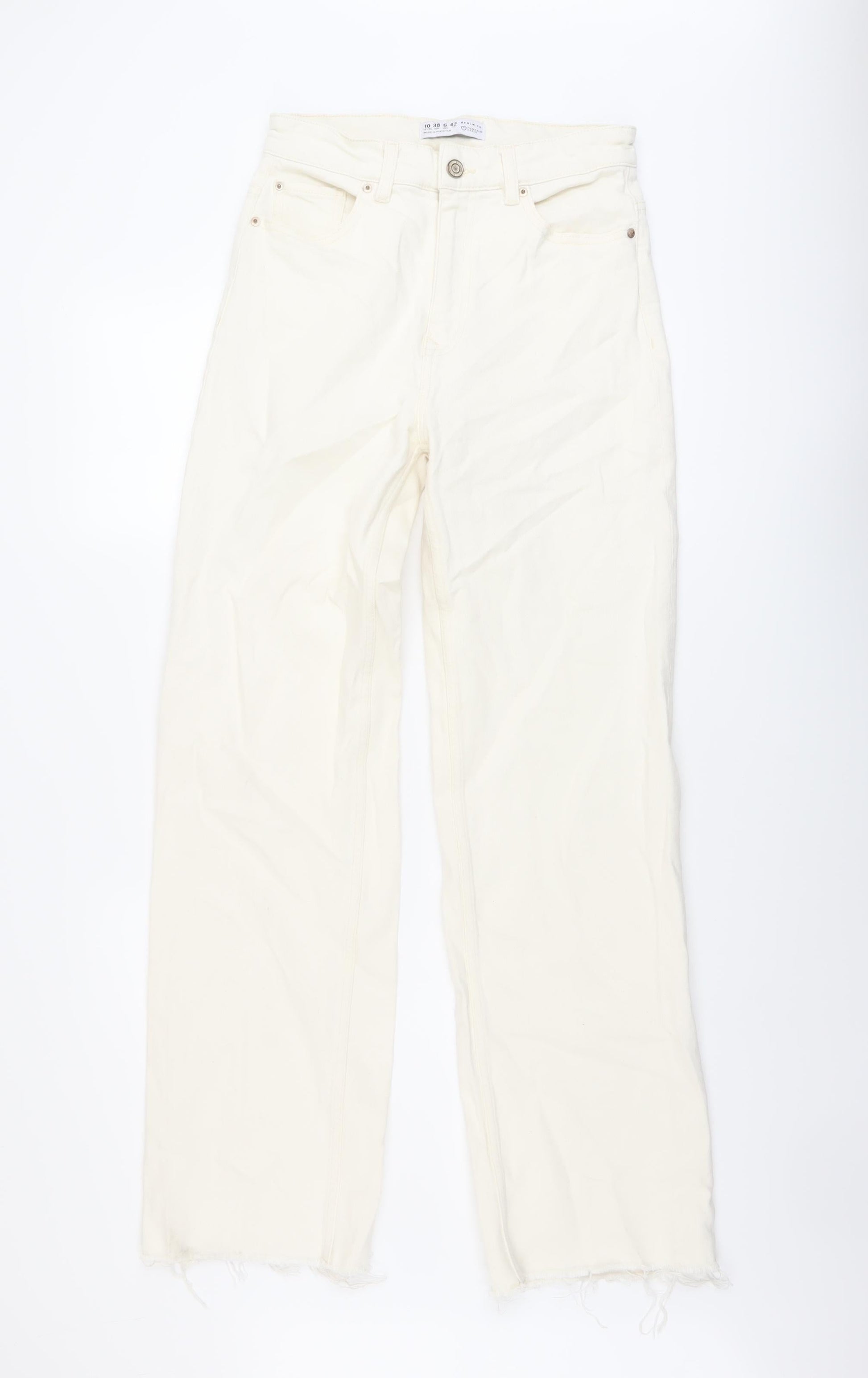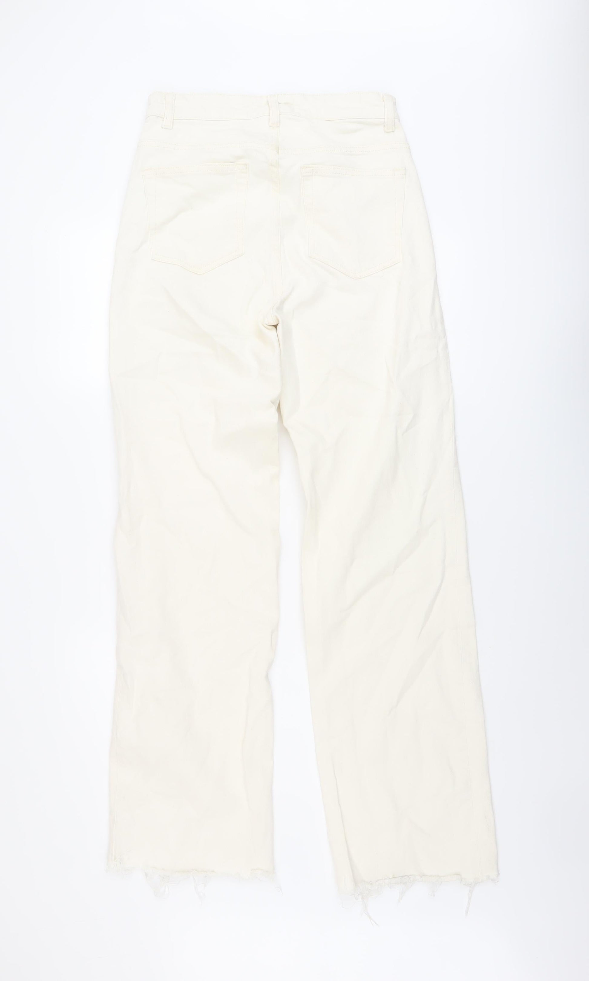 Denim & Co. Womens Ivory Cotton Wide-Leg Jeans Size 10 L32 in Regular Button