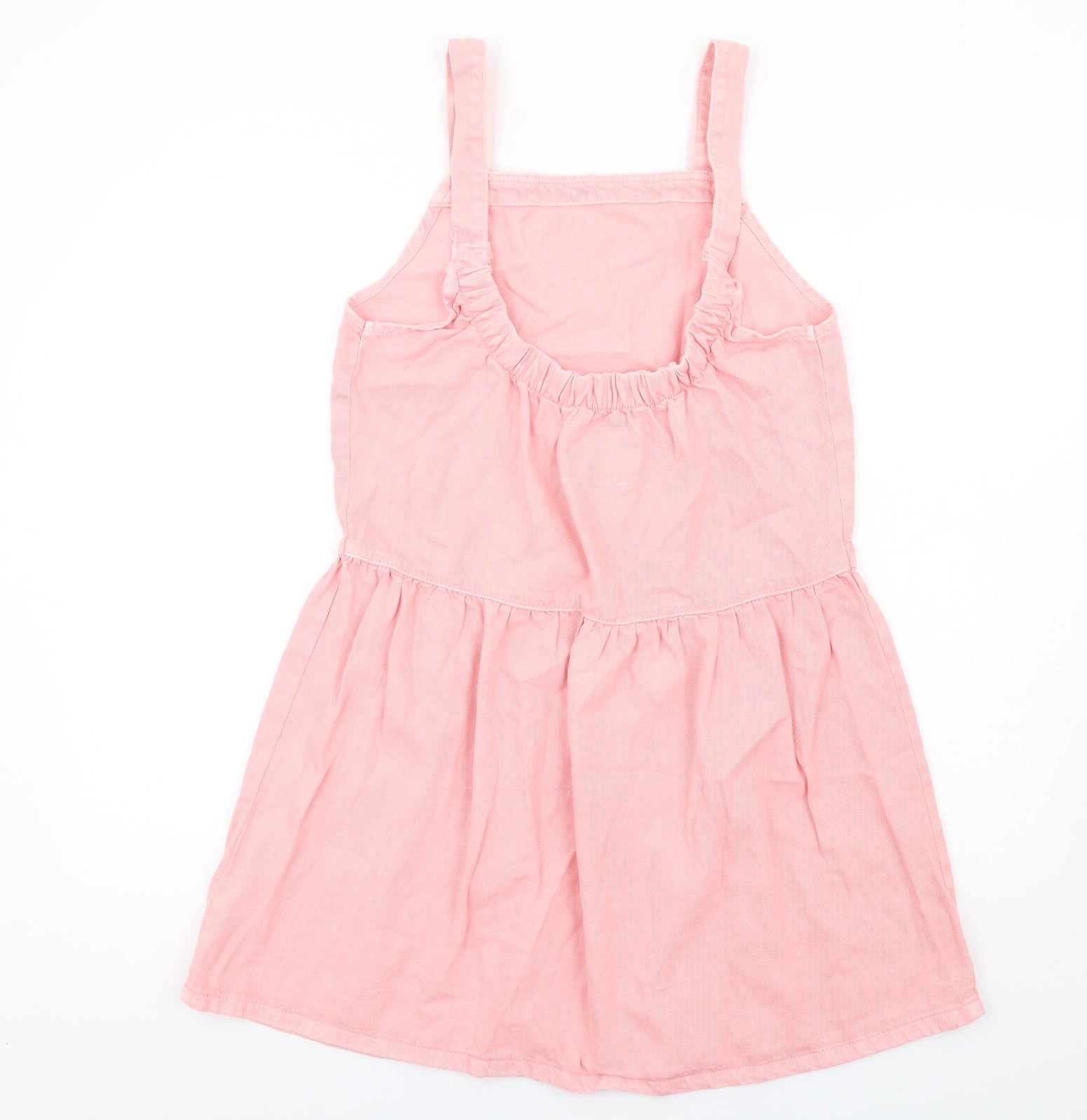 Denim & Co. Womens Pink Cotton A-Line Size 12 Square Neck Pullover