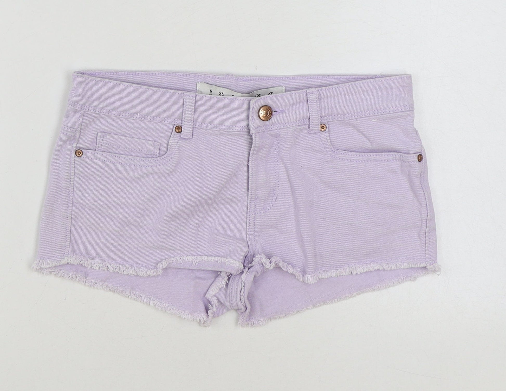 Denim & Co. Womens Purple Cotton Hot Pants Shorts Size 6 Regular Button