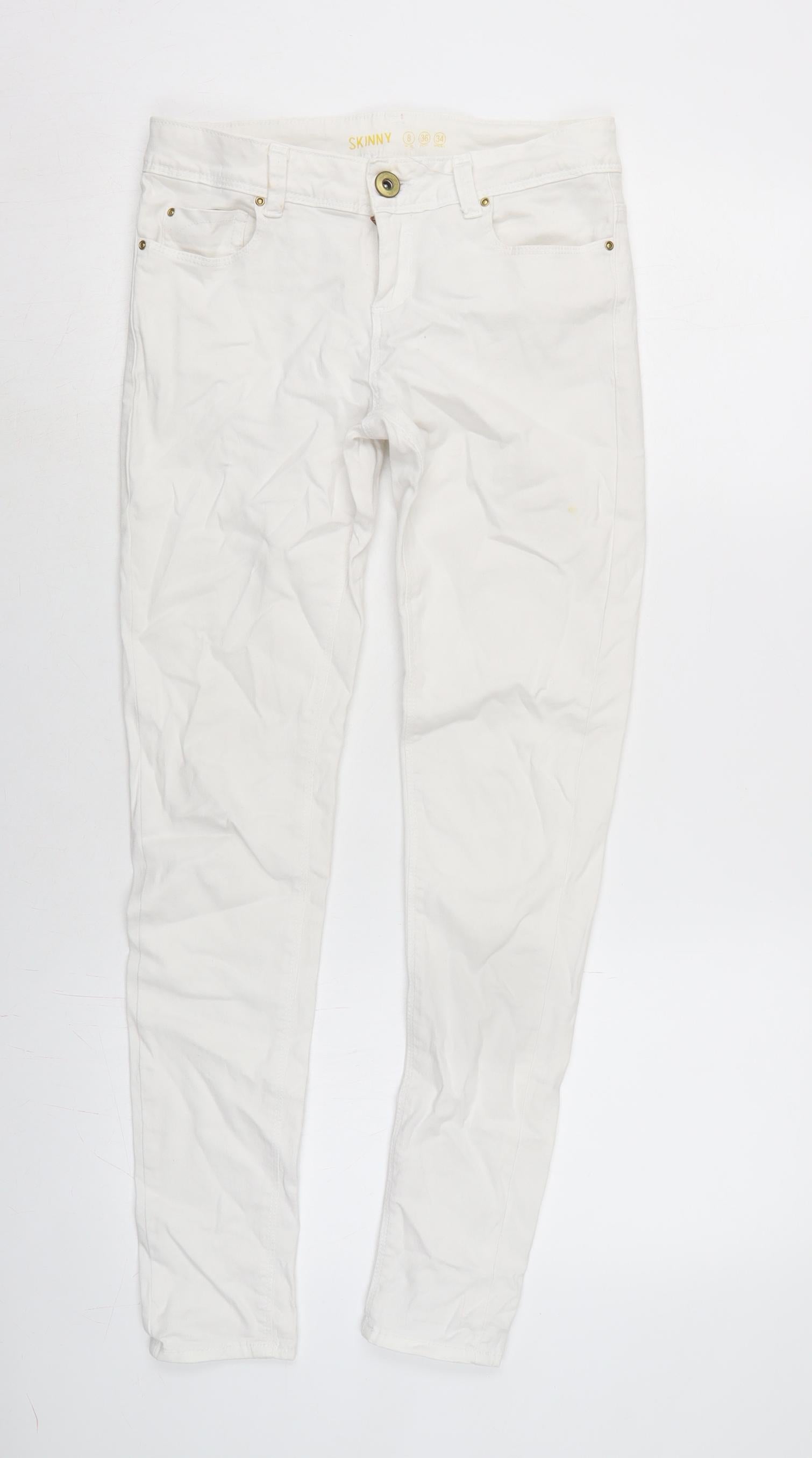 Denim & Co. Womens White Cotton Blend Skinny Jeans Size 8 L28 in Regular Zip